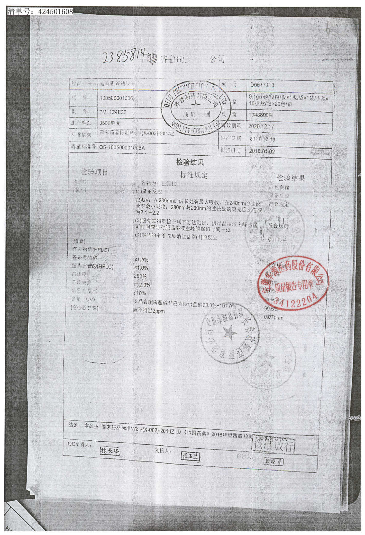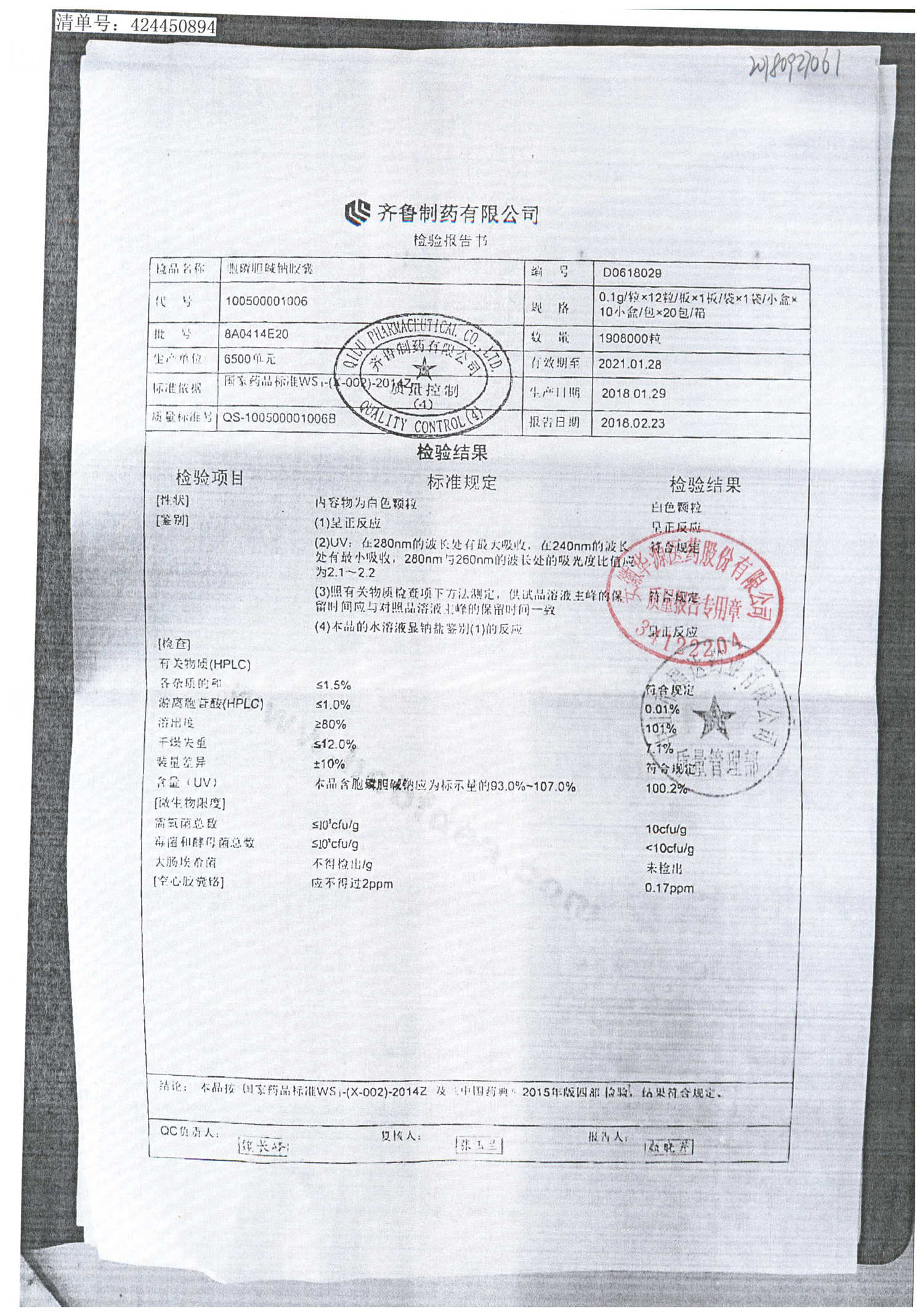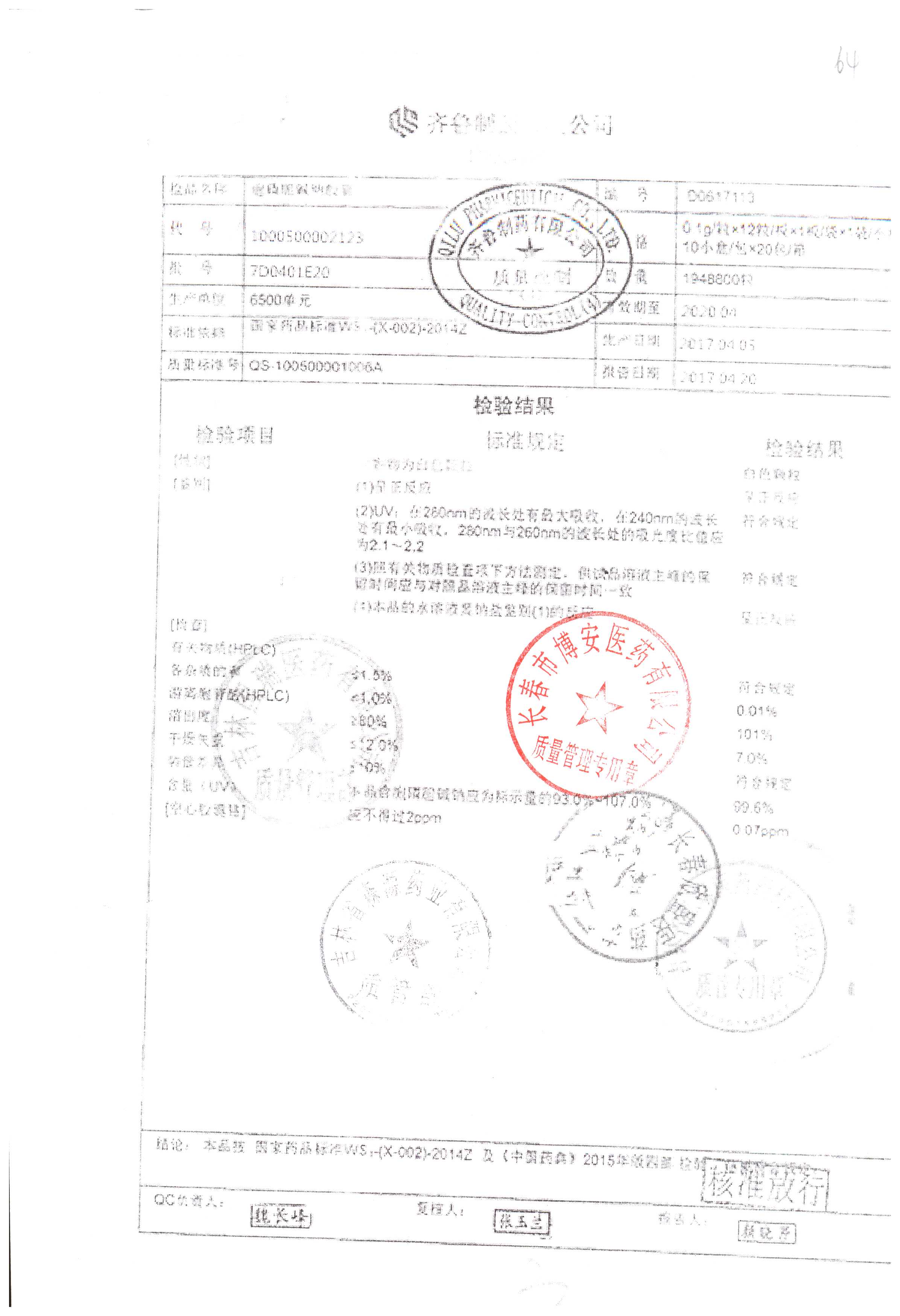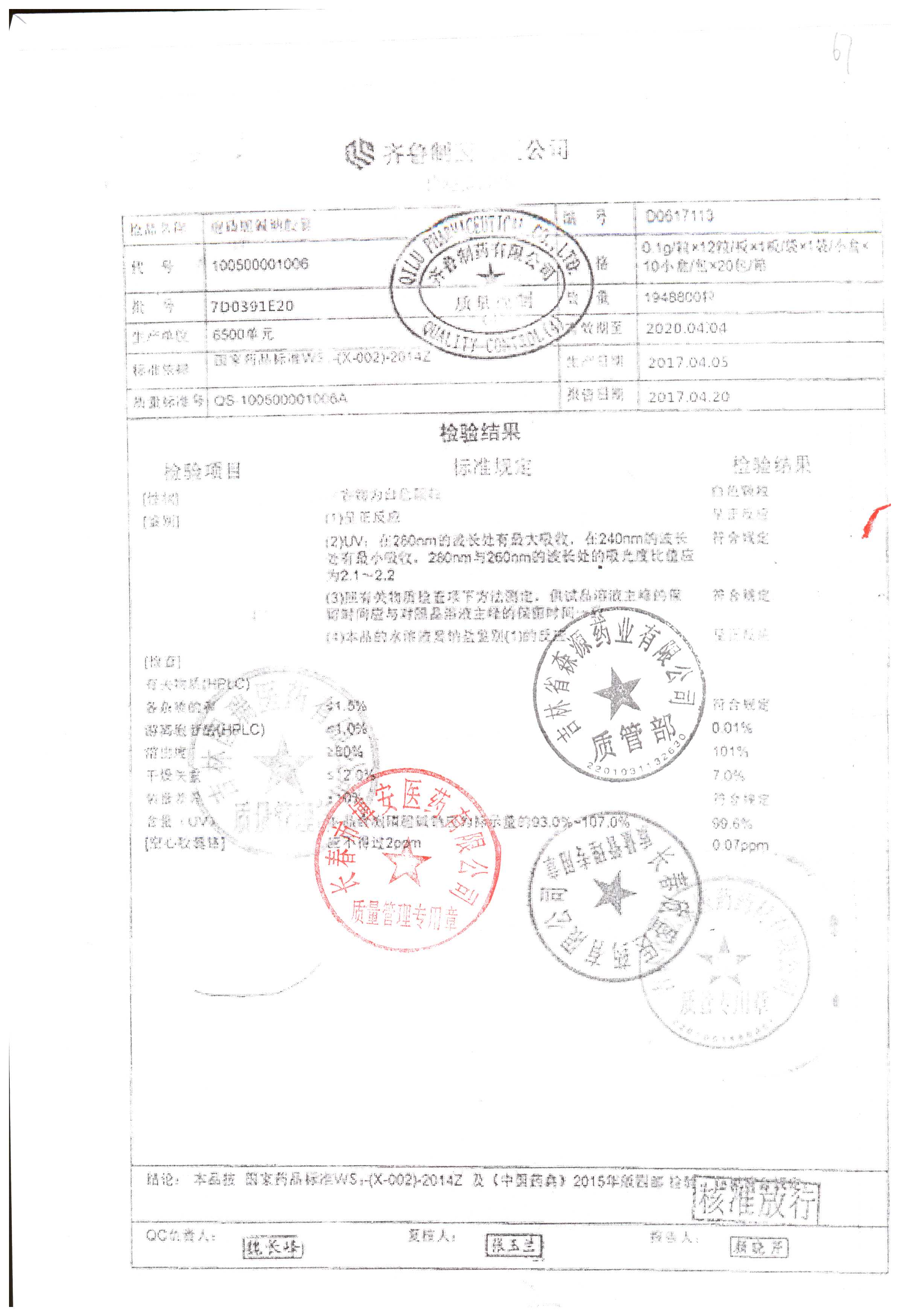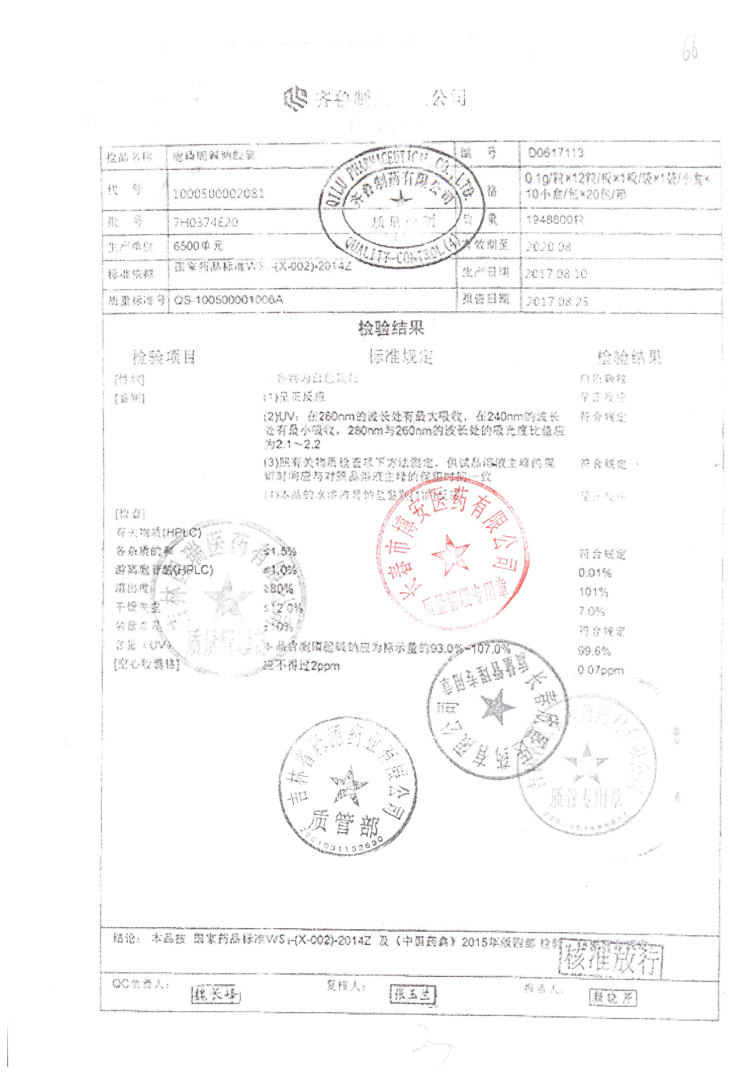 | 名稱 | 規(guī)格 | 批號 | 藥檢報告 |