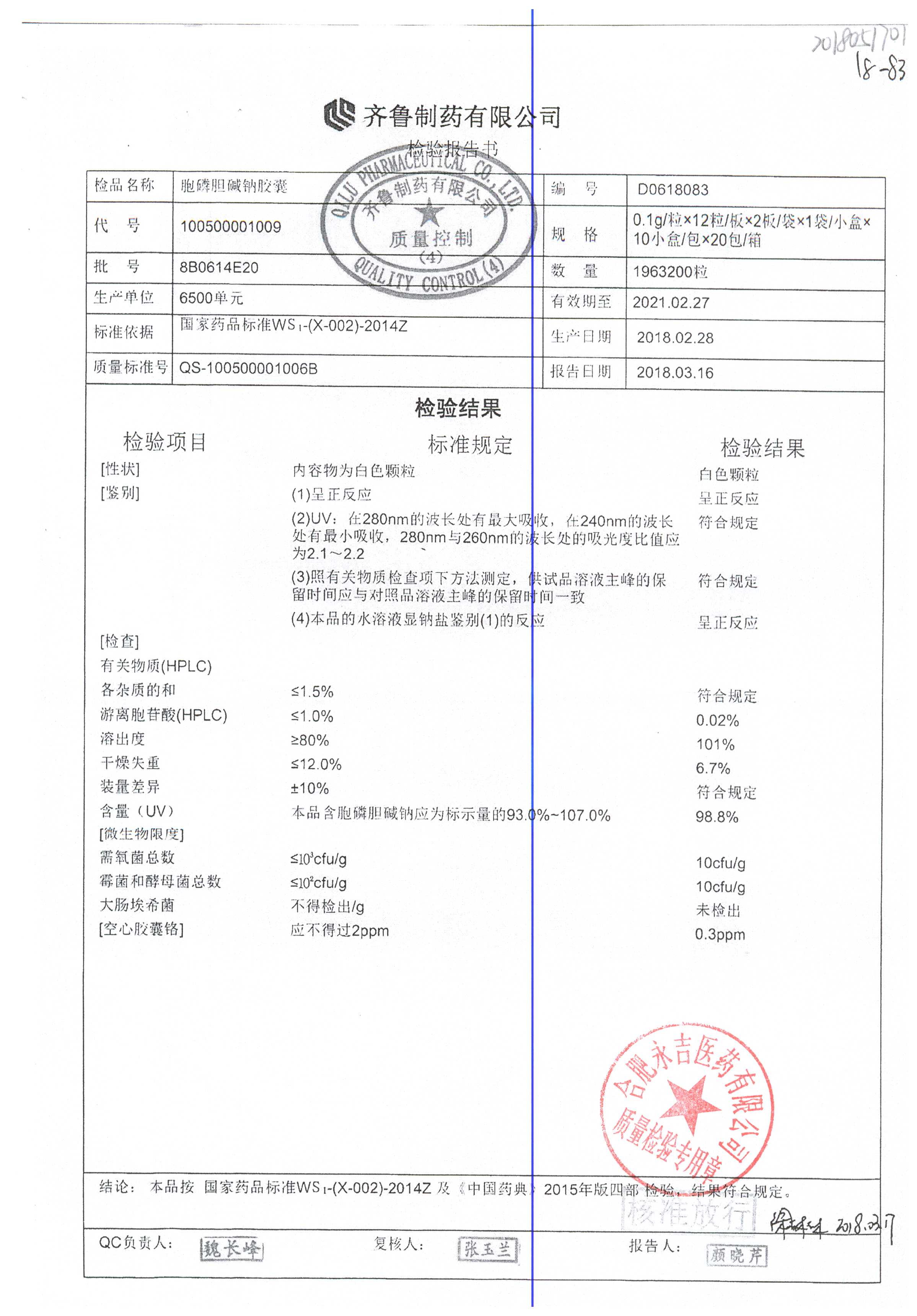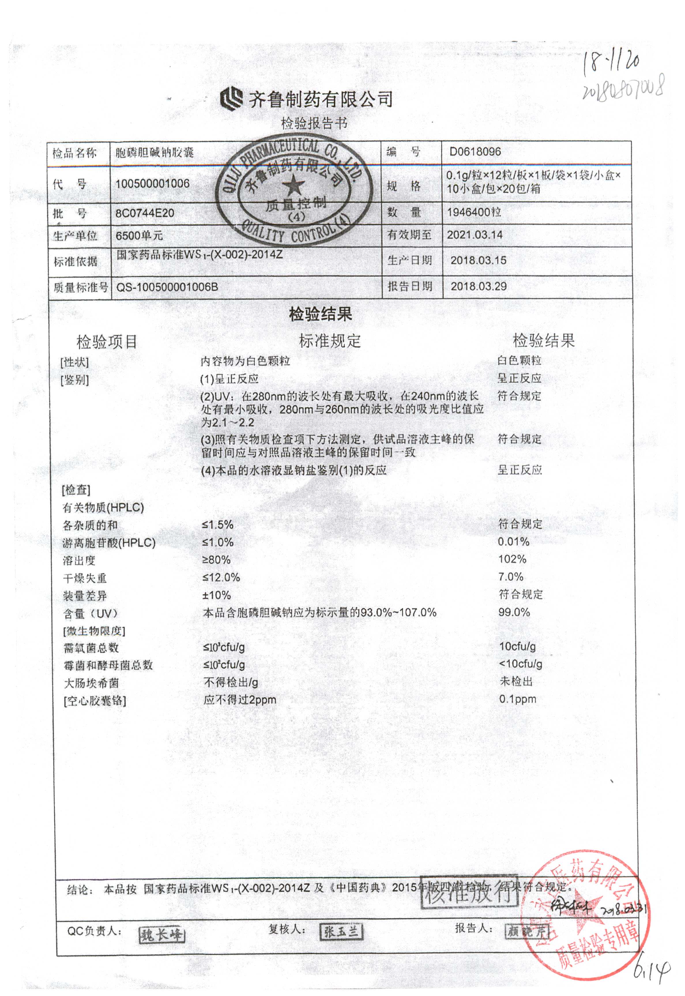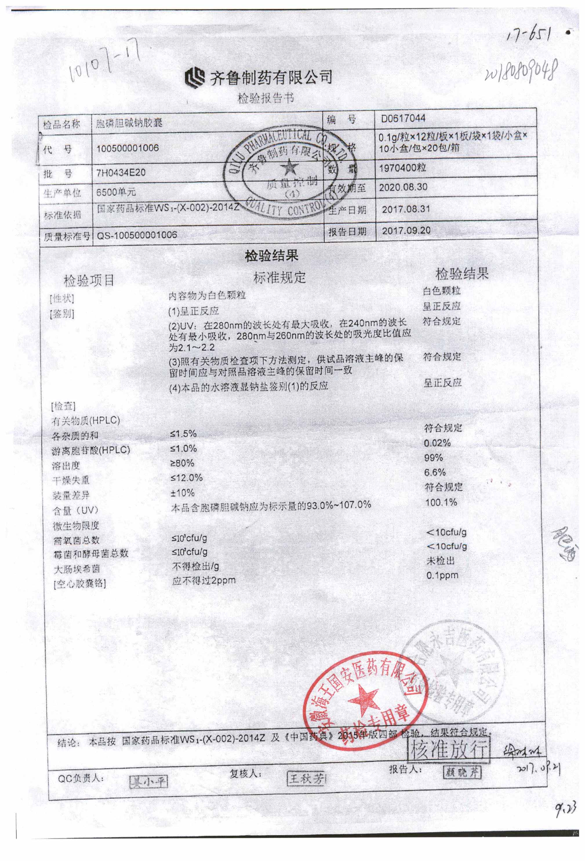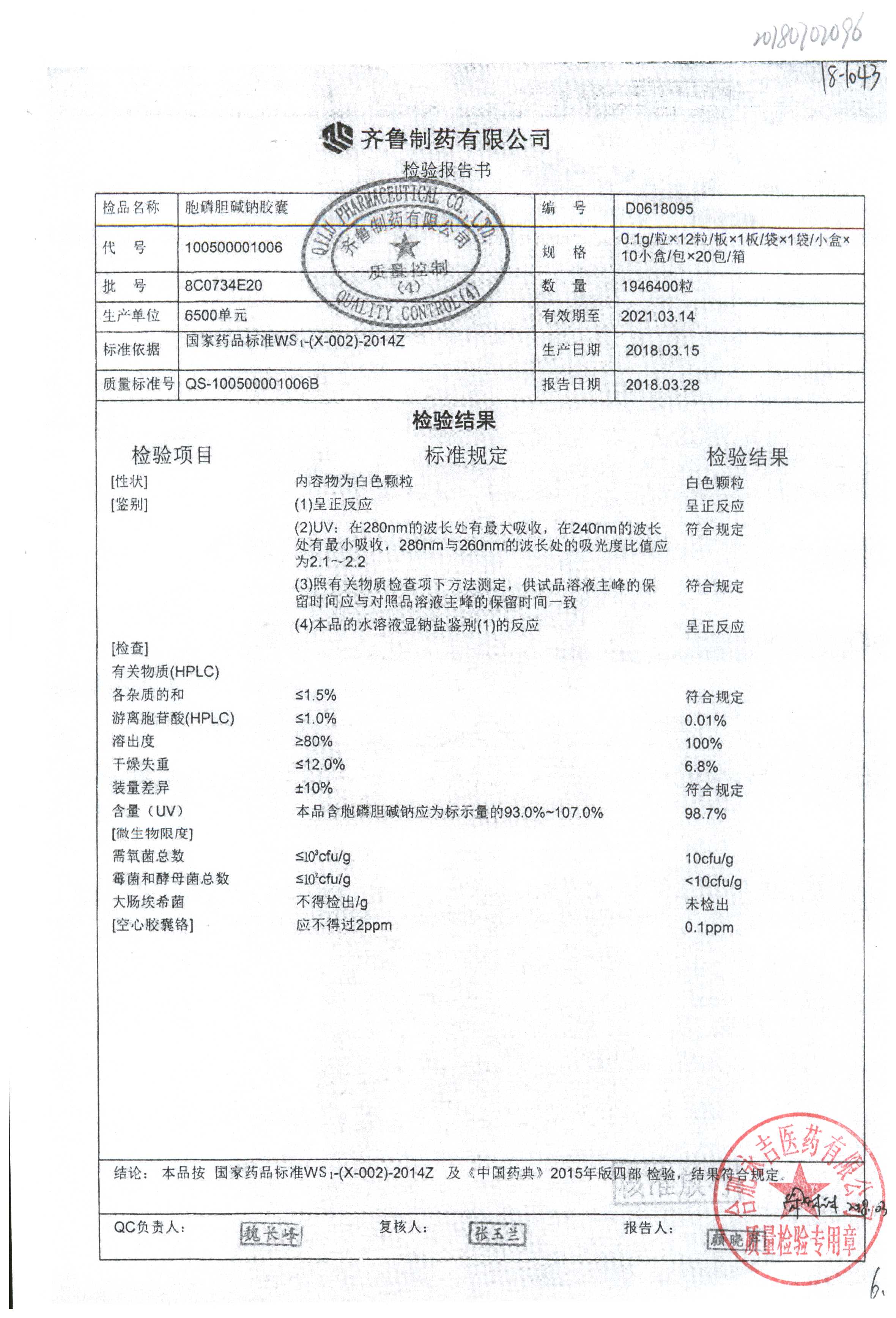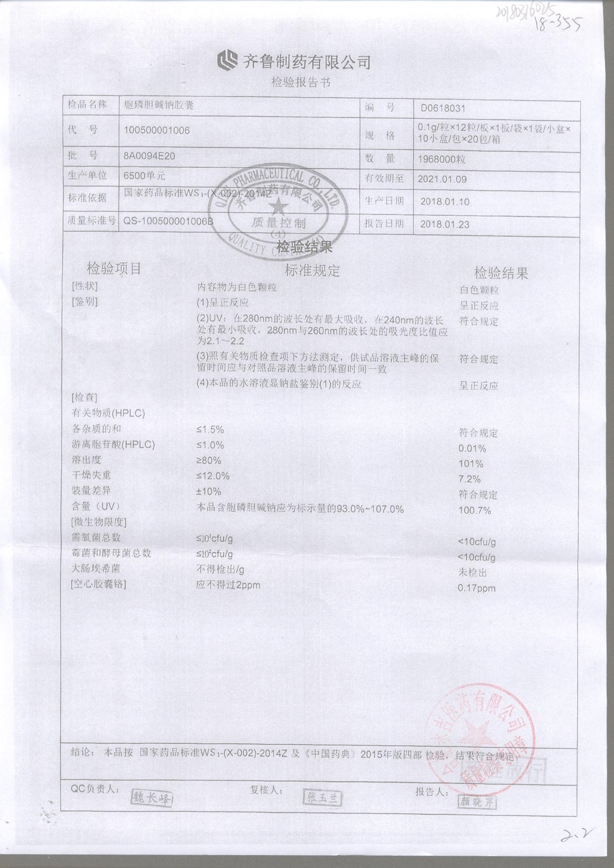 | 胞磷膽堿鈉膠囊 | 0.1g*12粒 | 8J1394E20 | 查看詳情 |