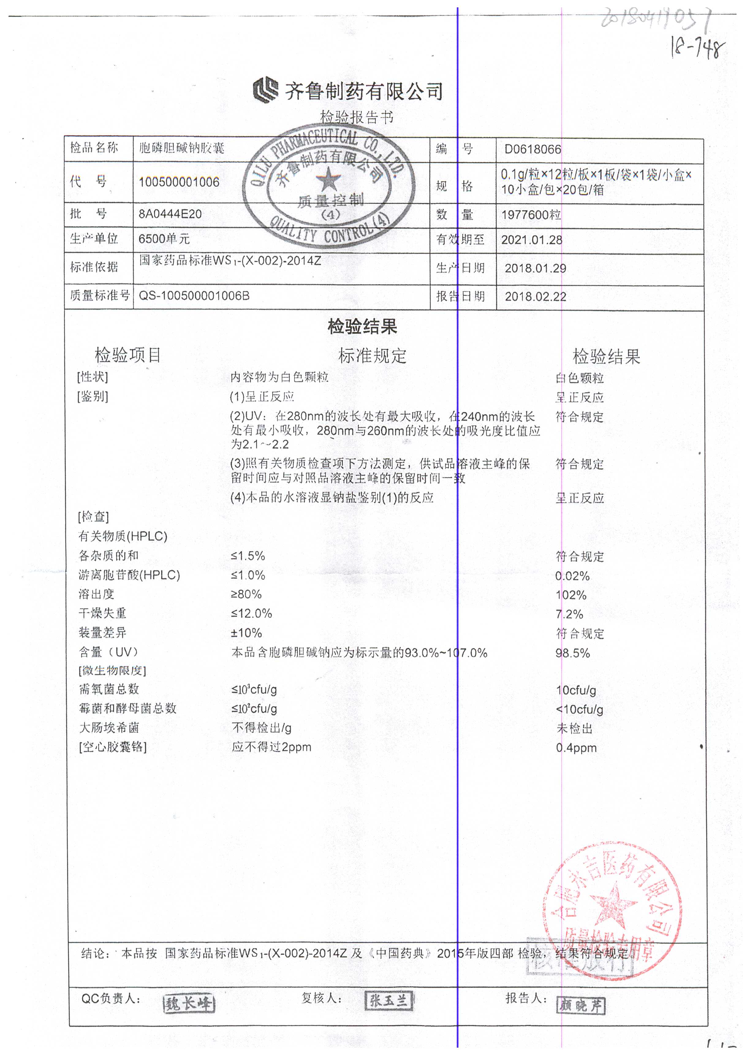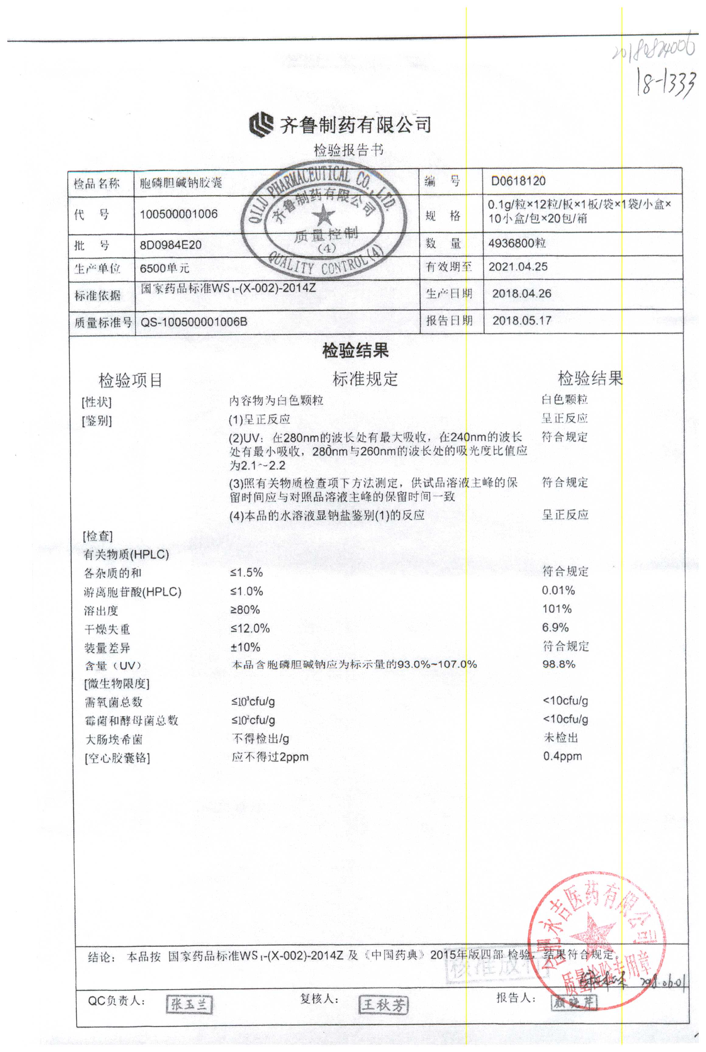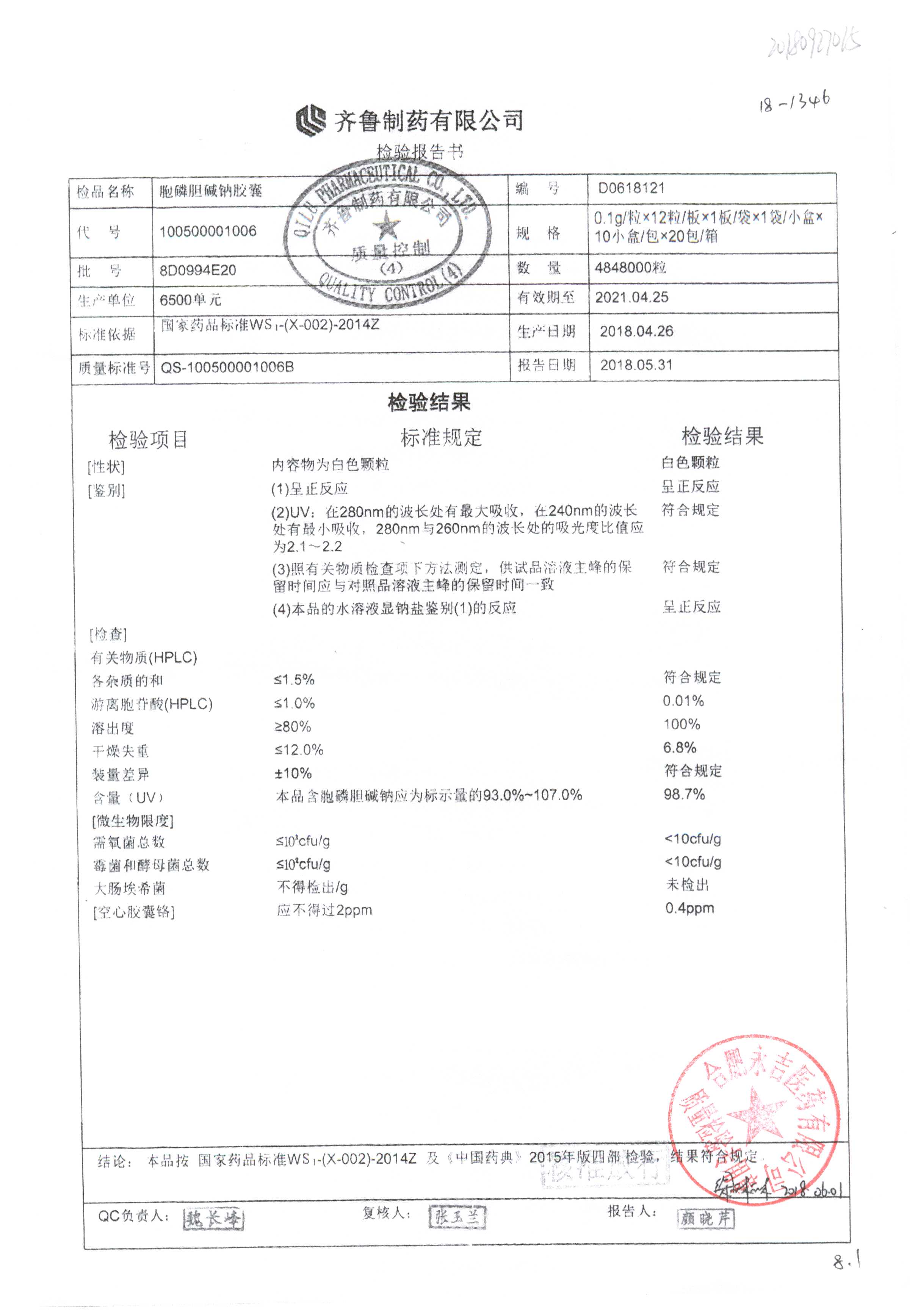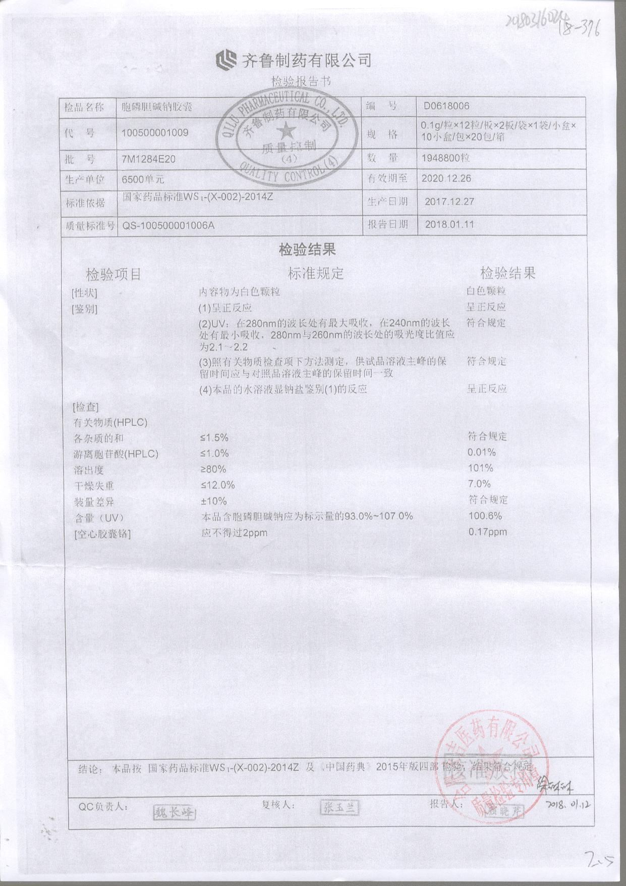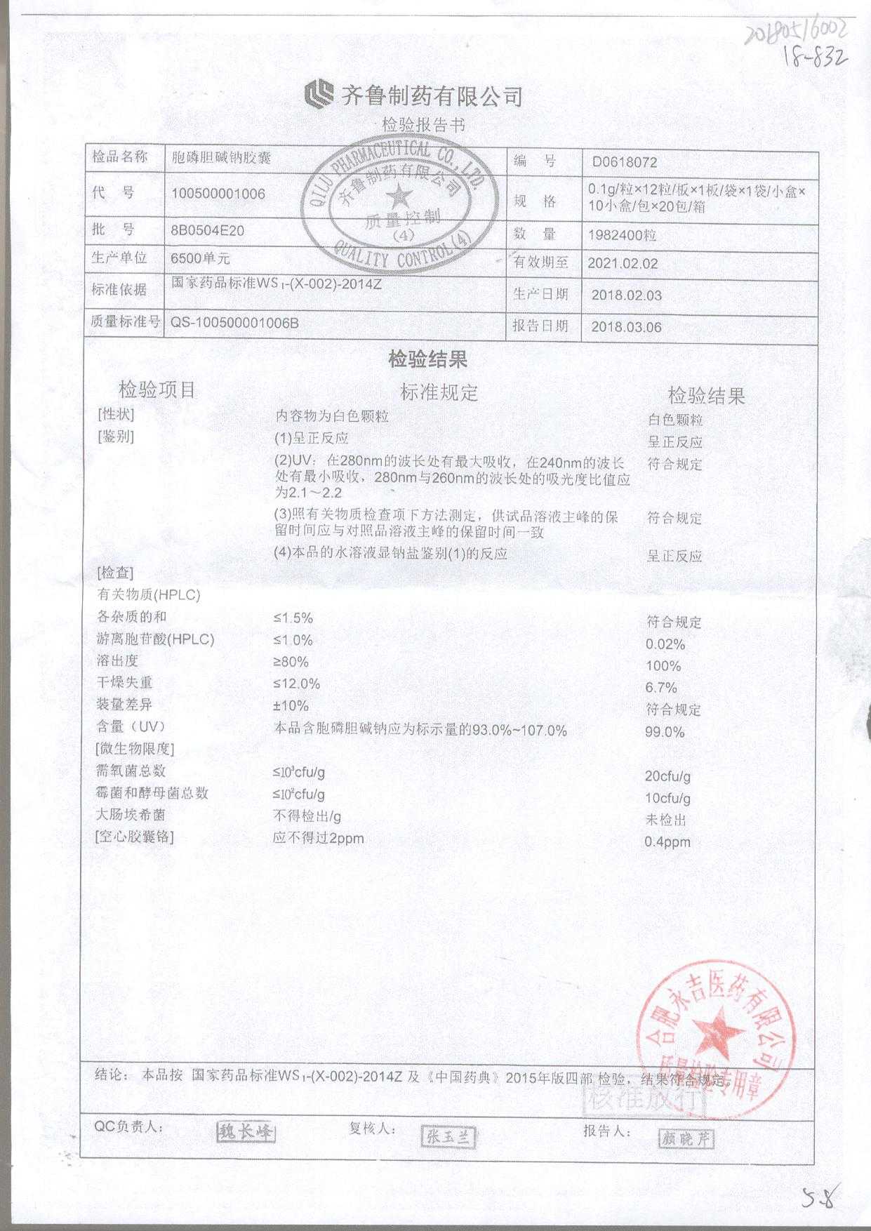| 胞磷膽堿鈉膠囊 | 0.1g*12粒 | 8J1394E20 | 查看詳情 |