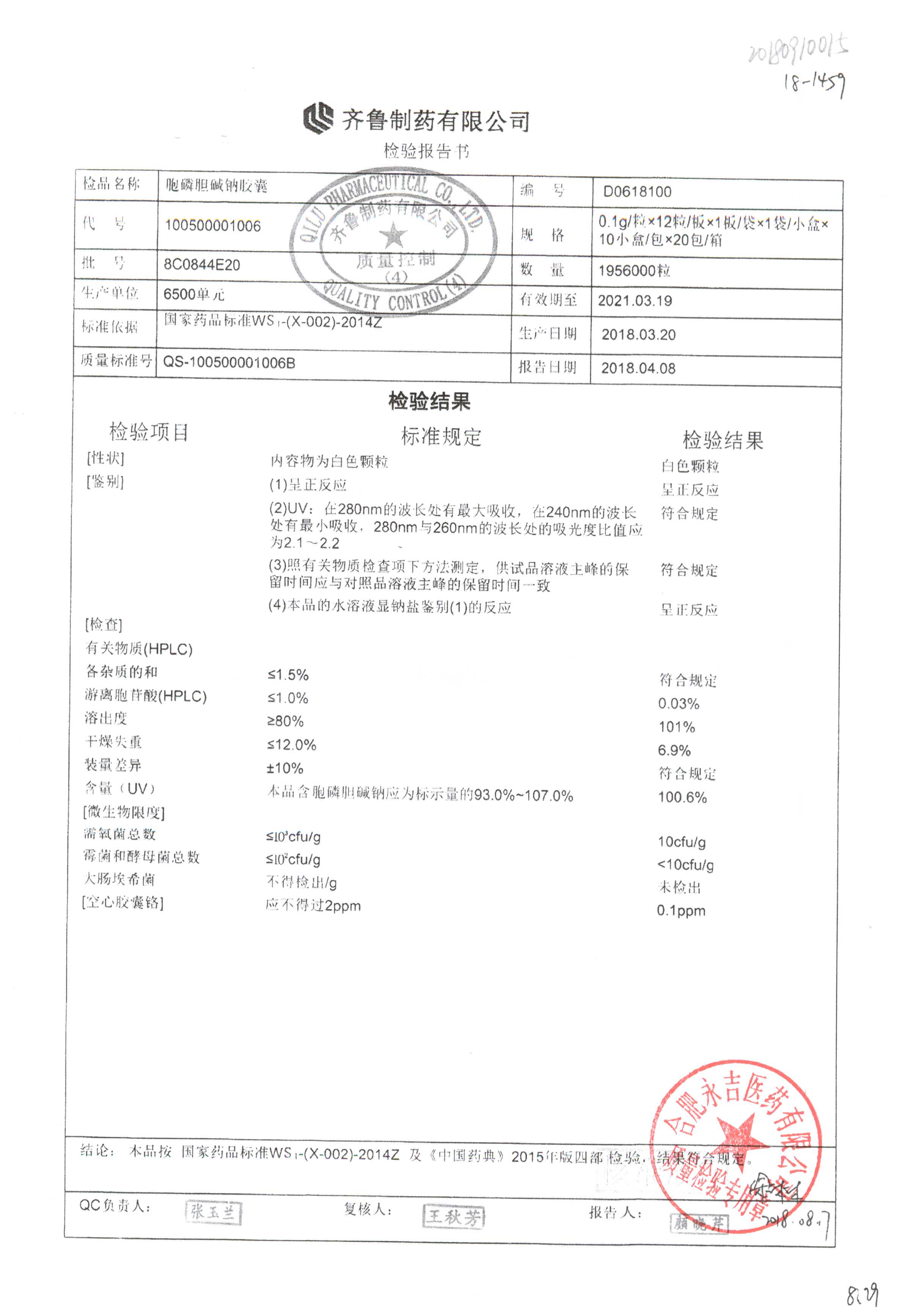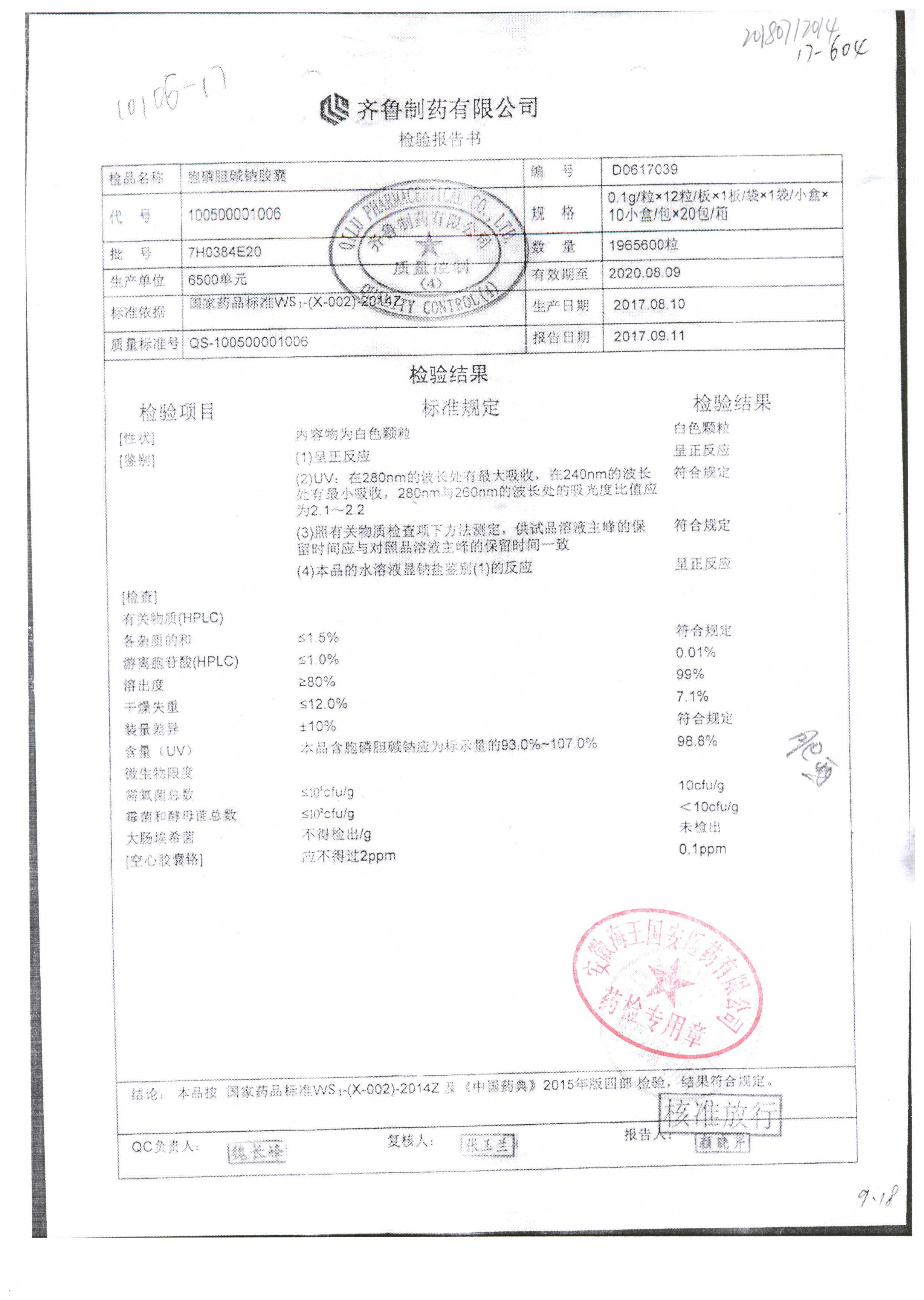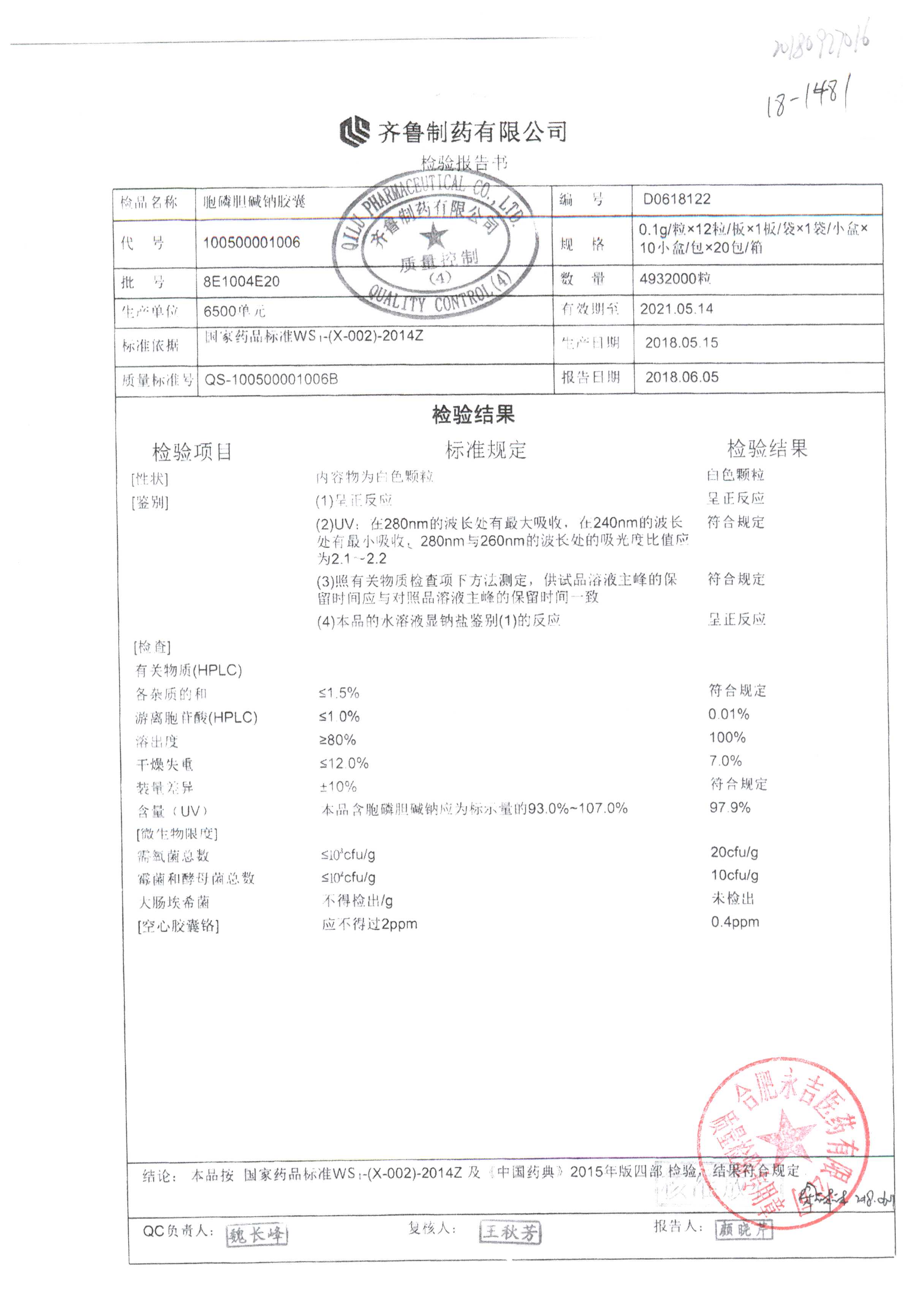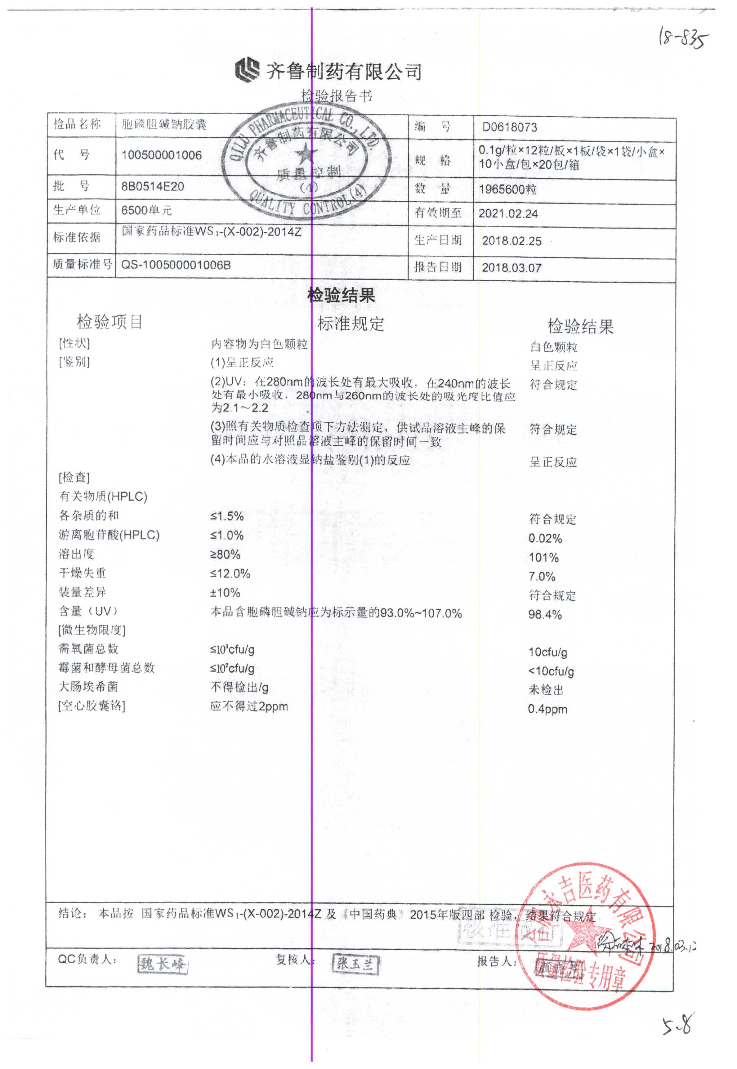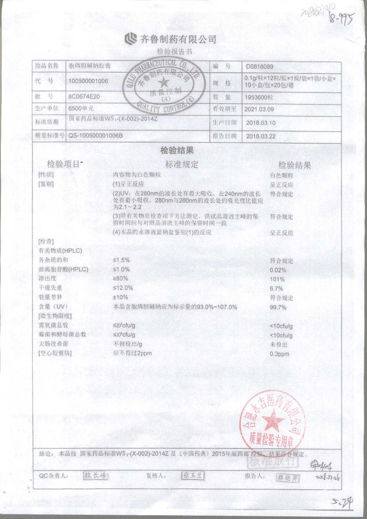 | 胞磷膽堿鈉膠囊 | 0.1g*12粒 | 8J1394E20 | 查看詳情 |