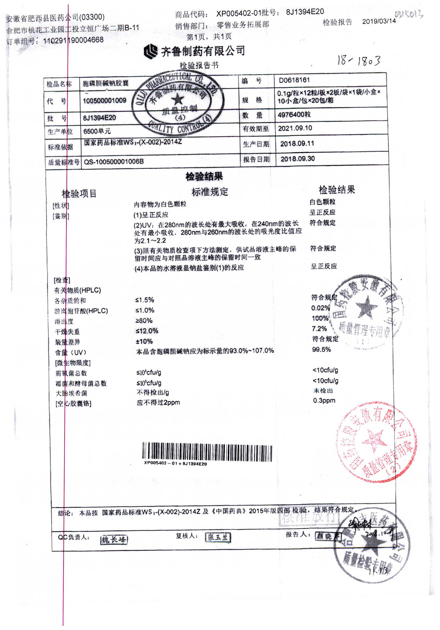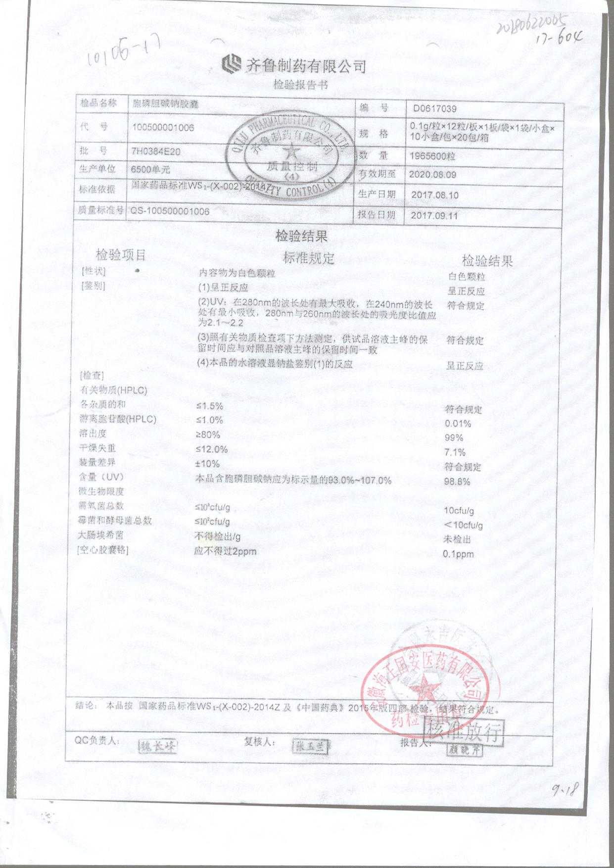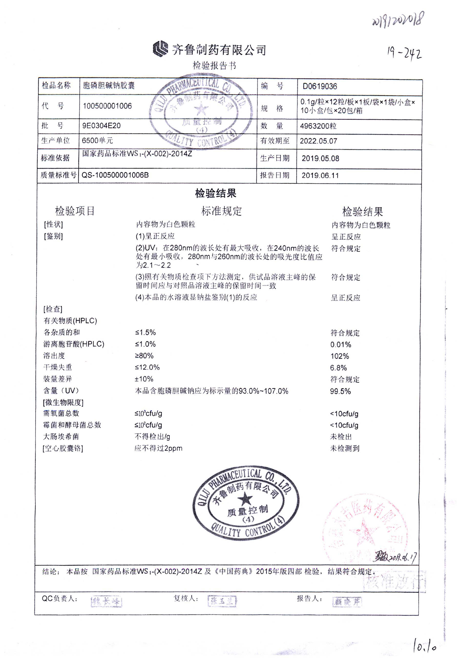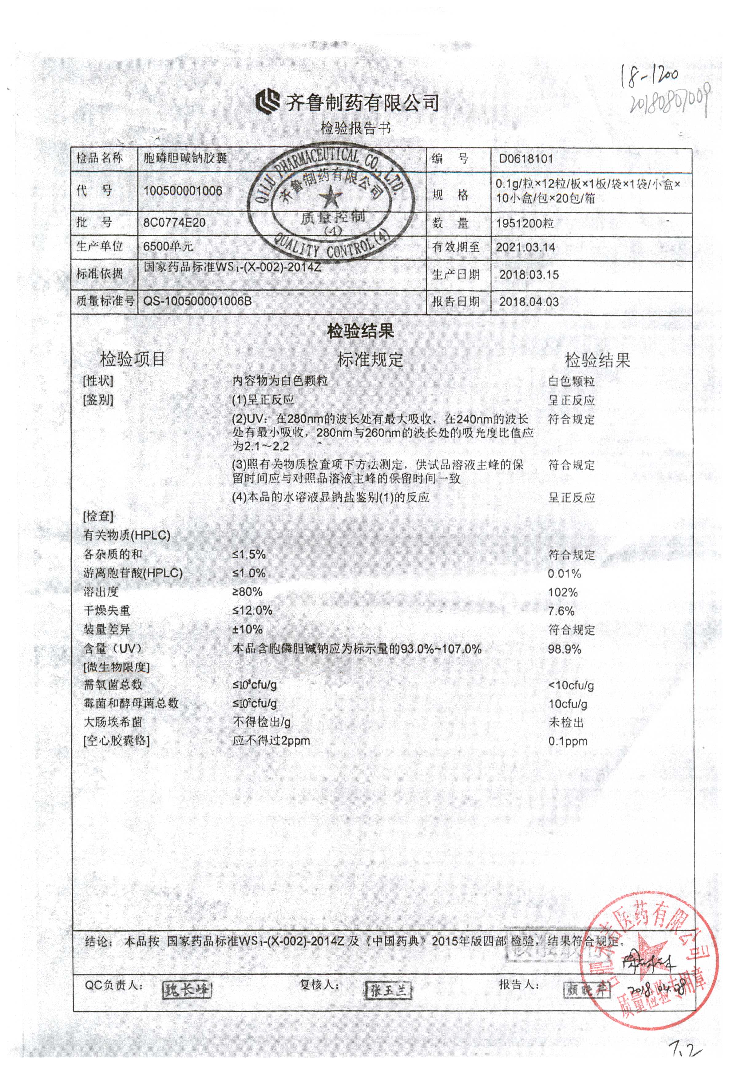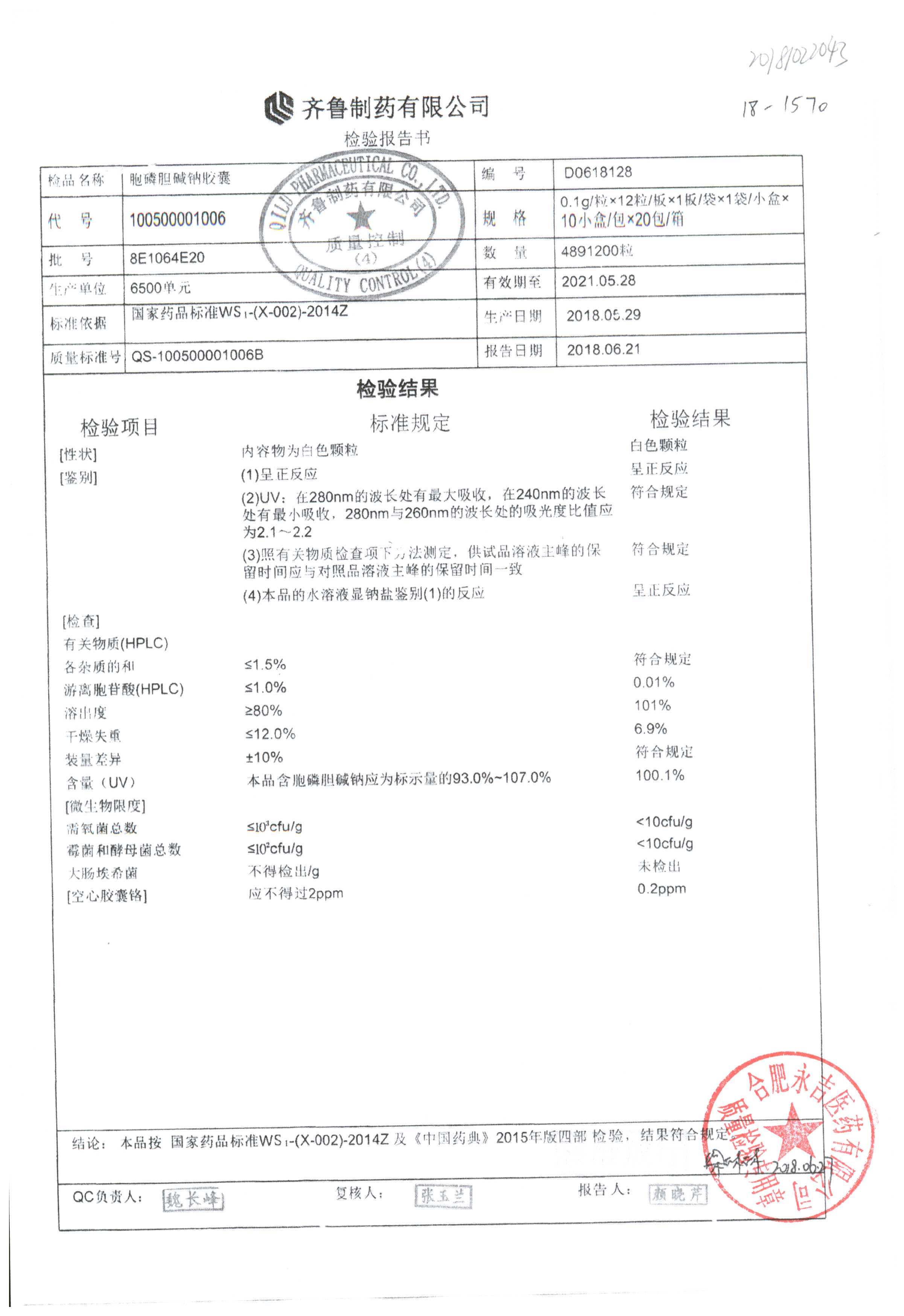 | 胞磷膽堿鈉膠囊 | 0.1g*12粒 | 8J1394E20 | 查看詳情 |