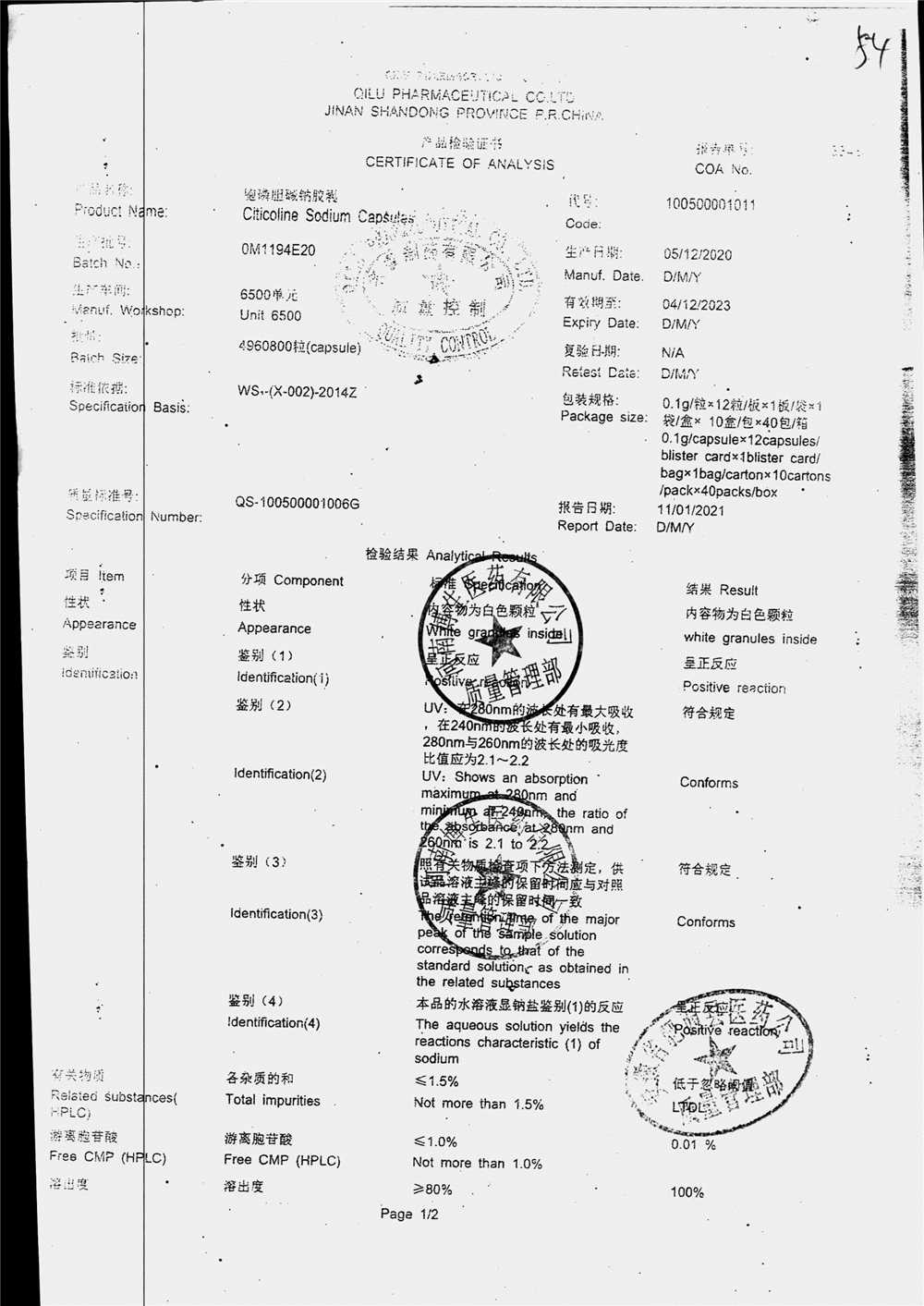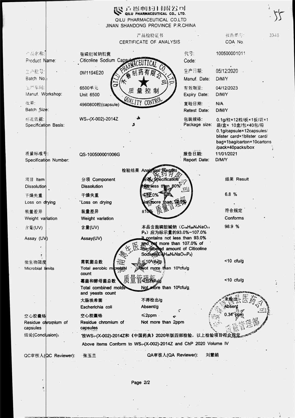 | 胞磷膽堿鈉膠囊 | 0.1g*12粒 | 0M1194E20(2/2) | 查看詳情 |