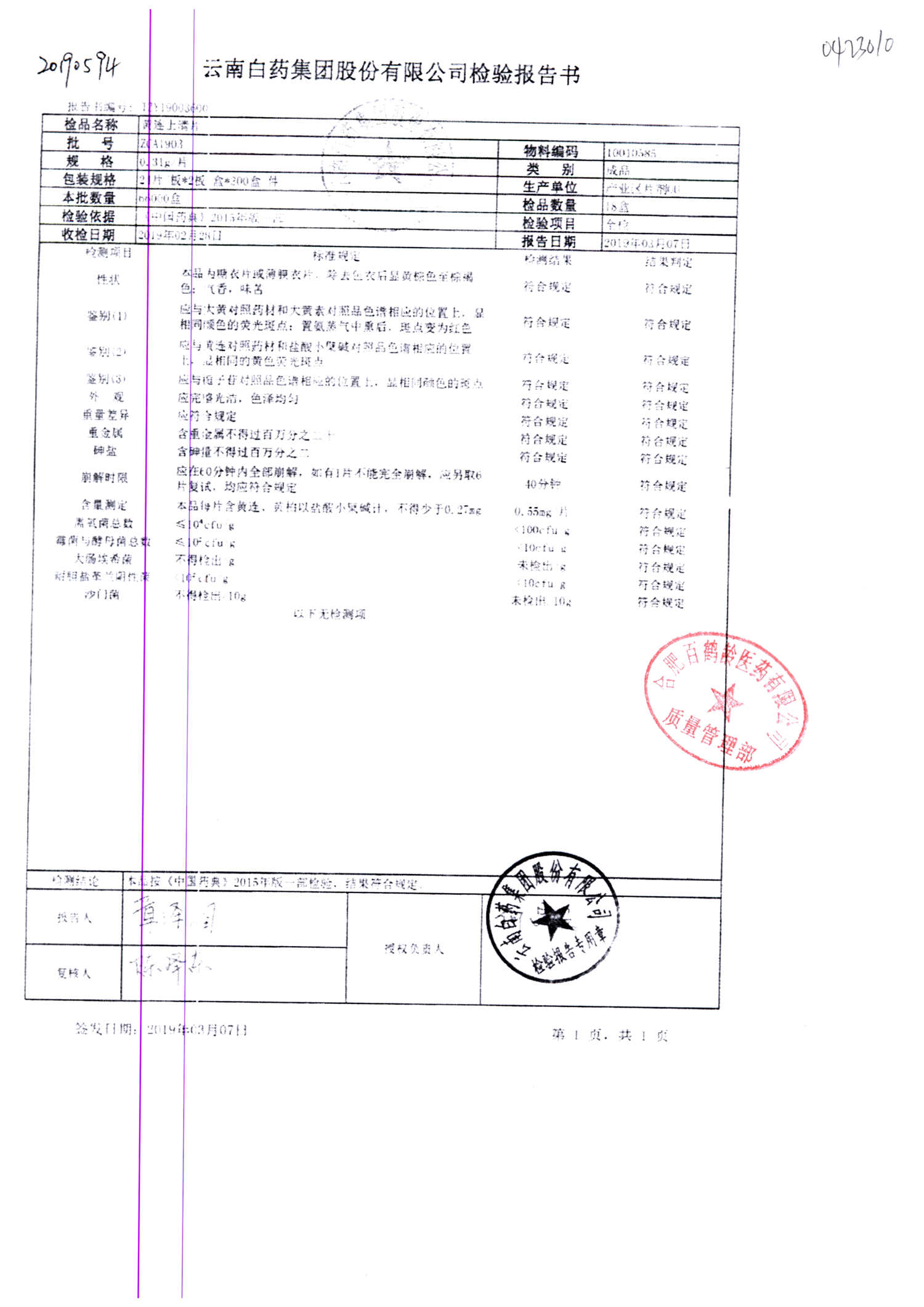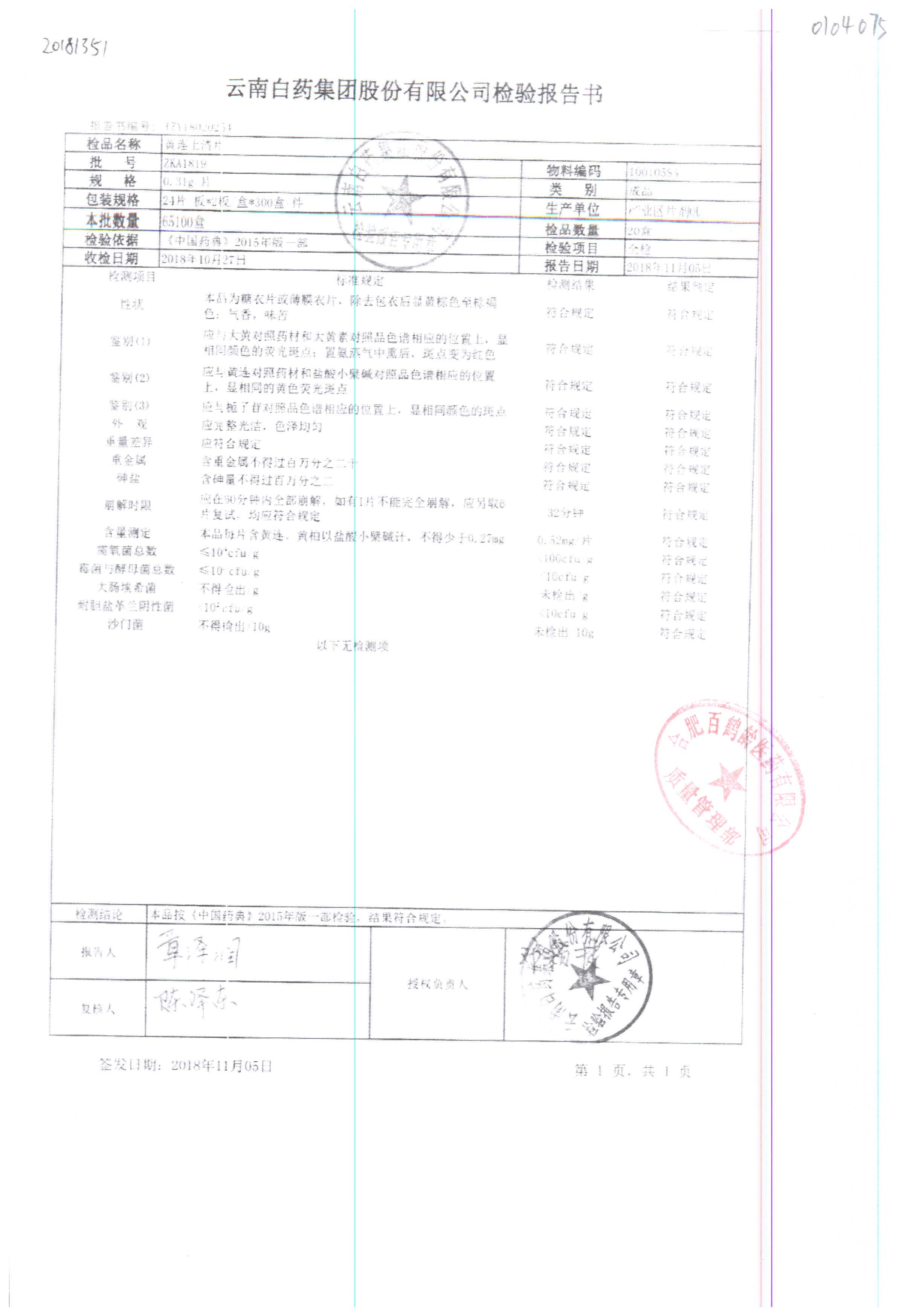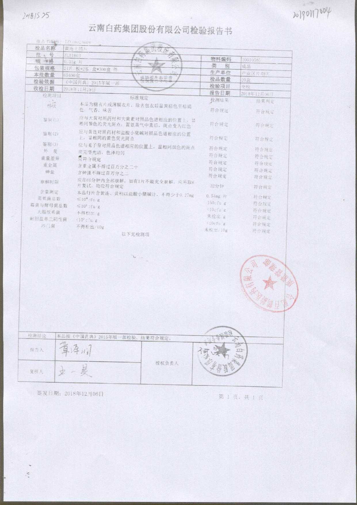 | 名稱 | 規(guī)格 | 批號 | 藥檢報(bào)告 |