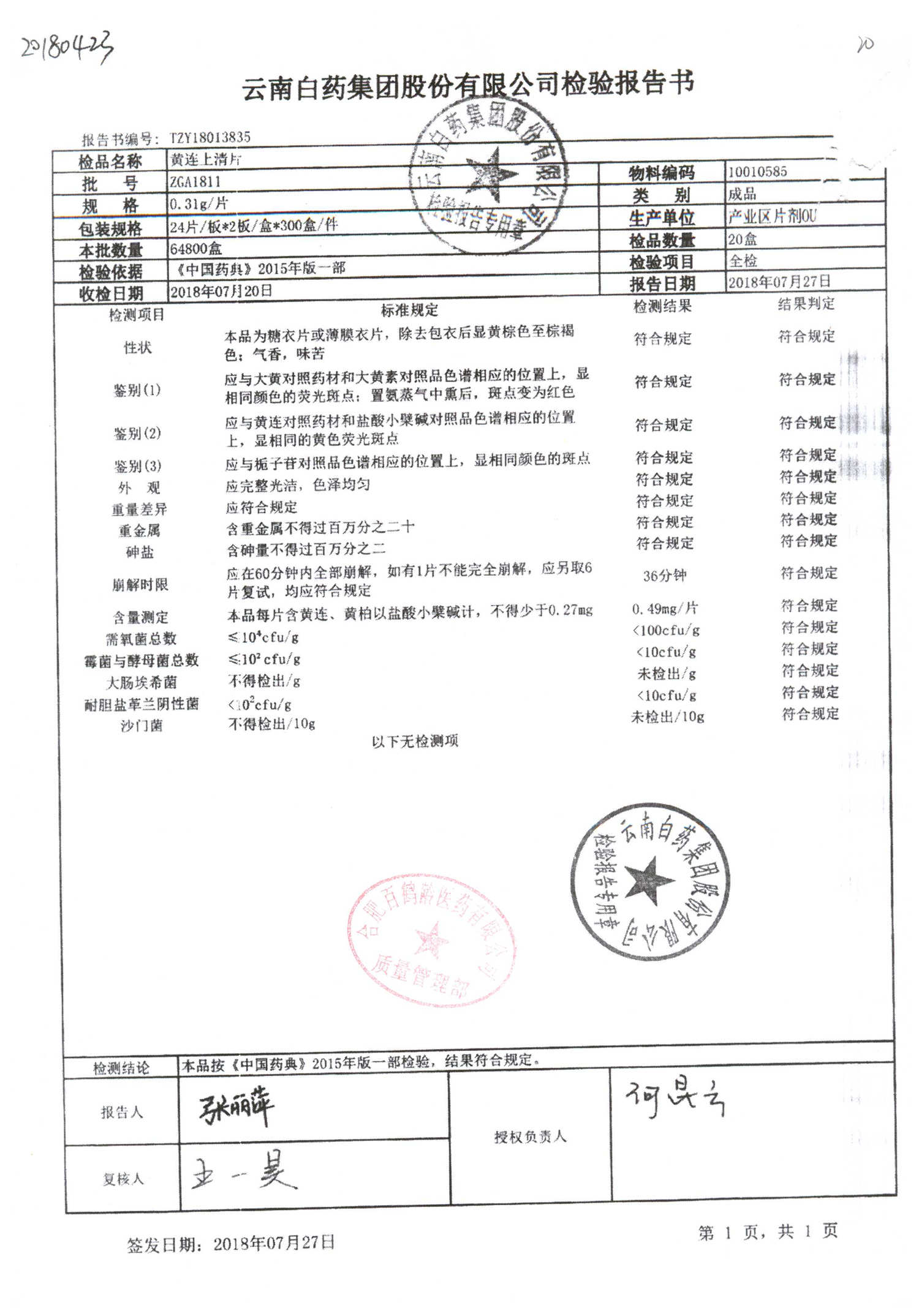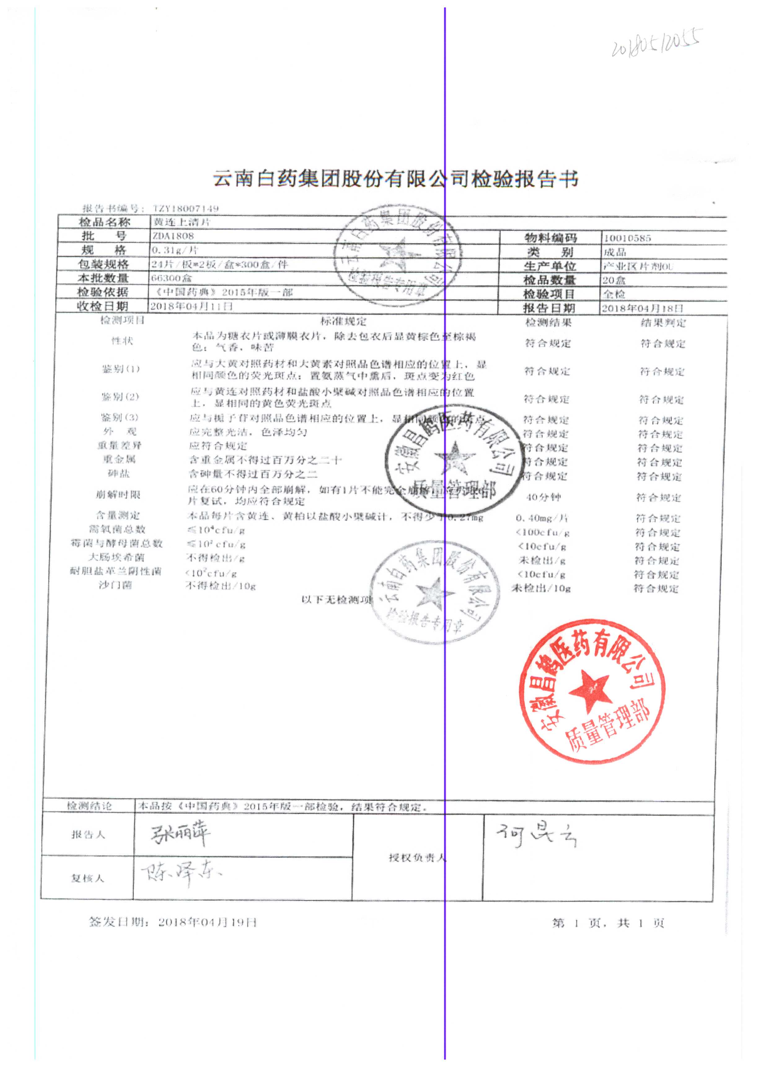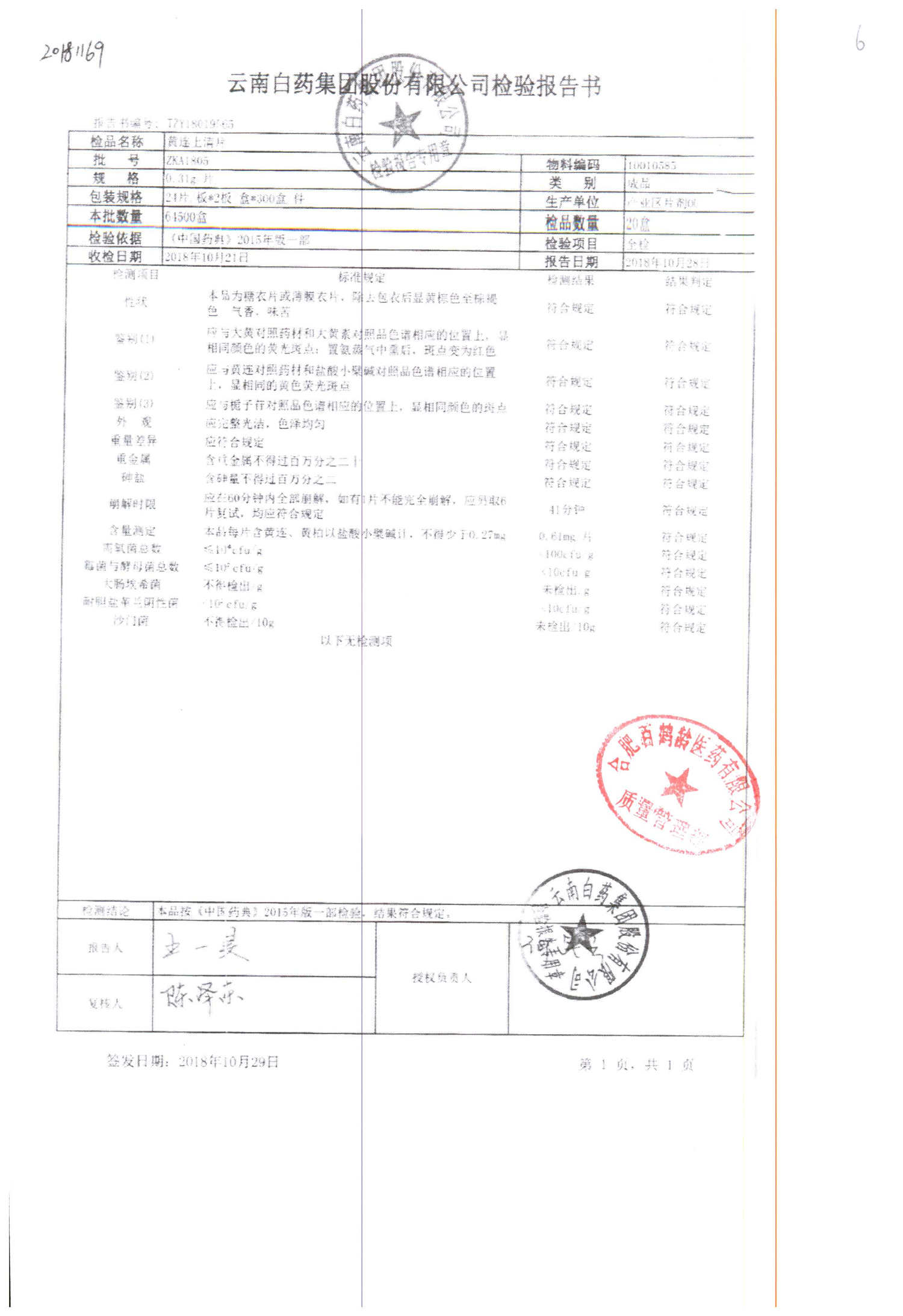 | 名稱 | 規(guī)格 | 批號 | 藥檢報(bào)告 |