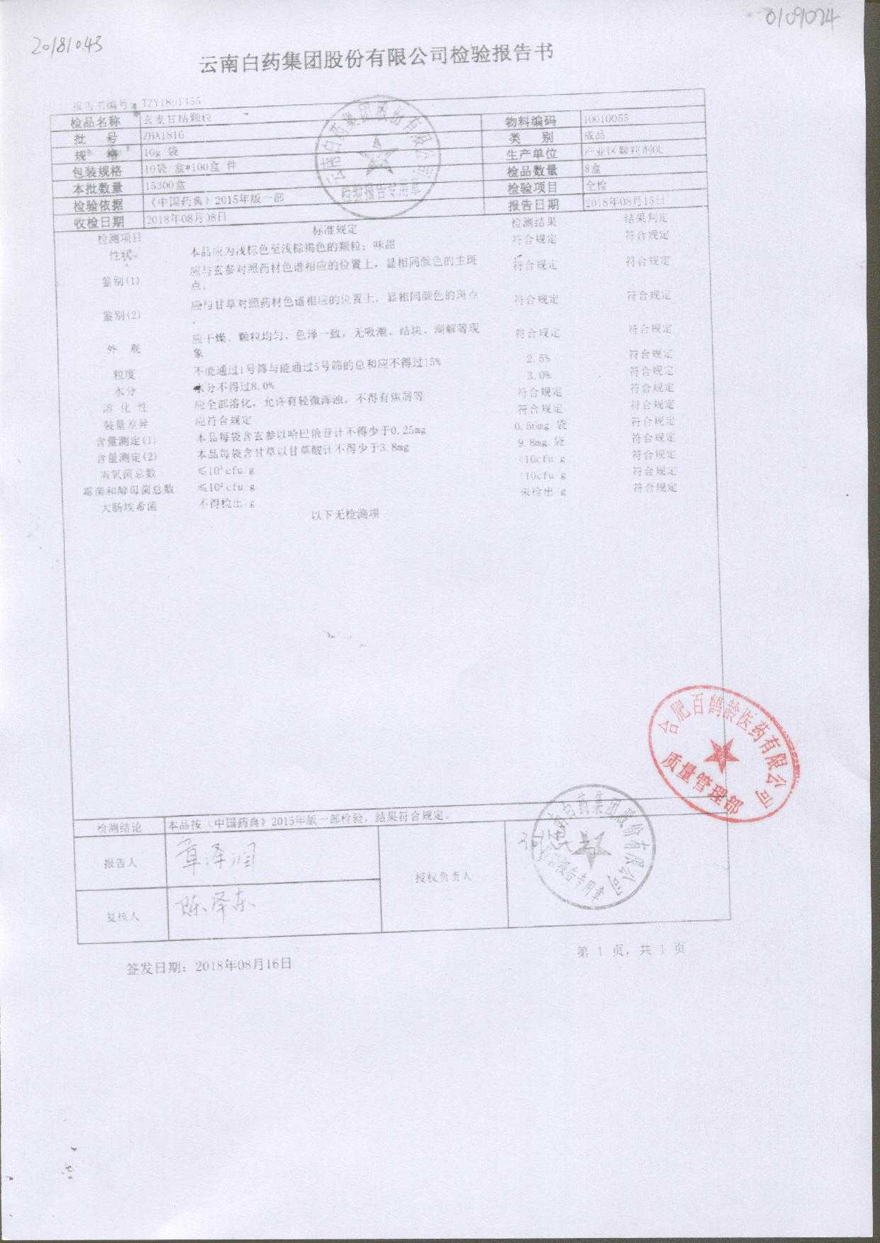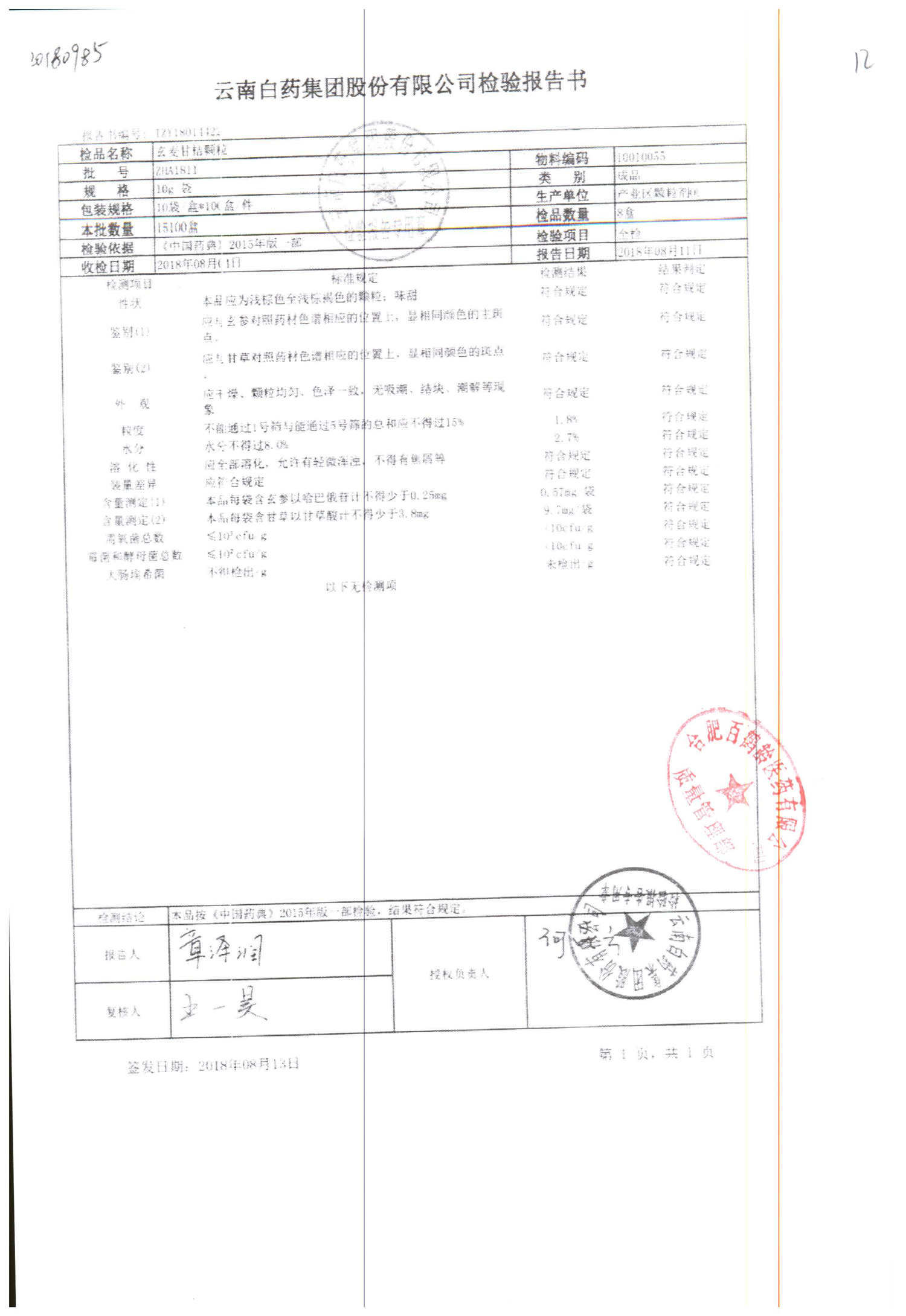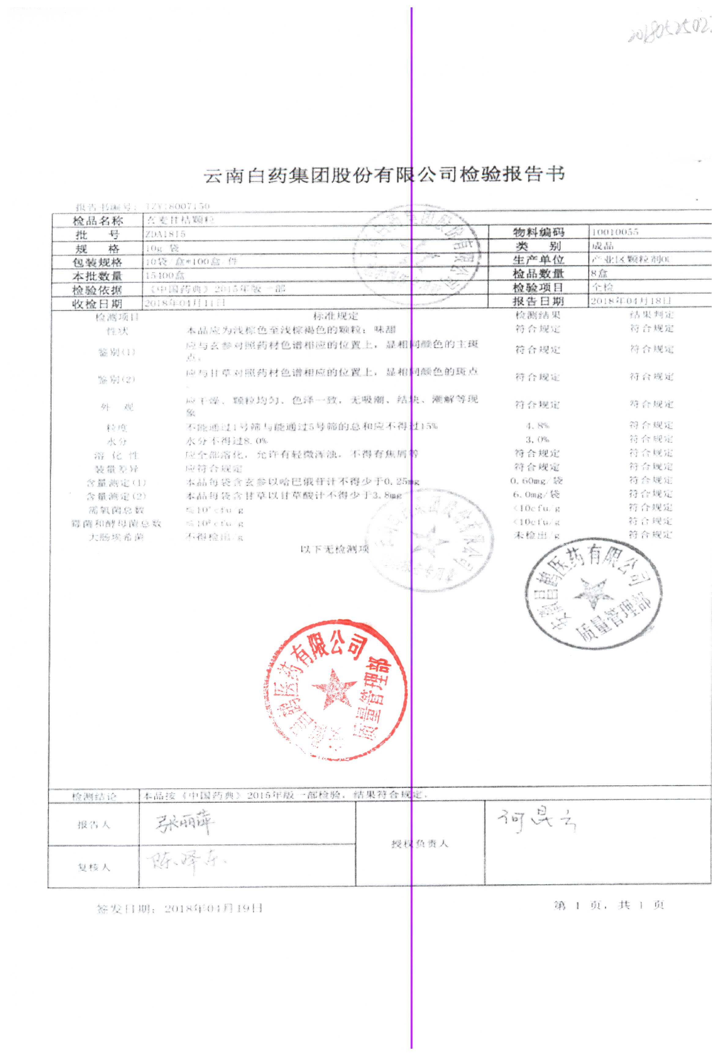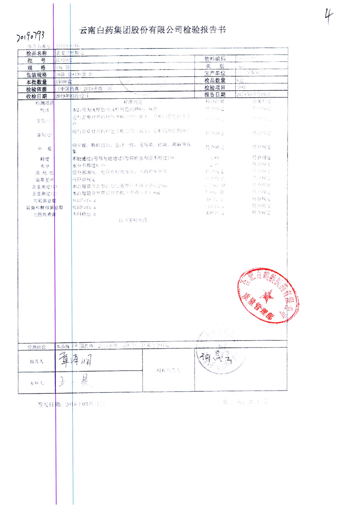| 名稱 | 規(guī)格 | 批號 | 藥檢報告 |