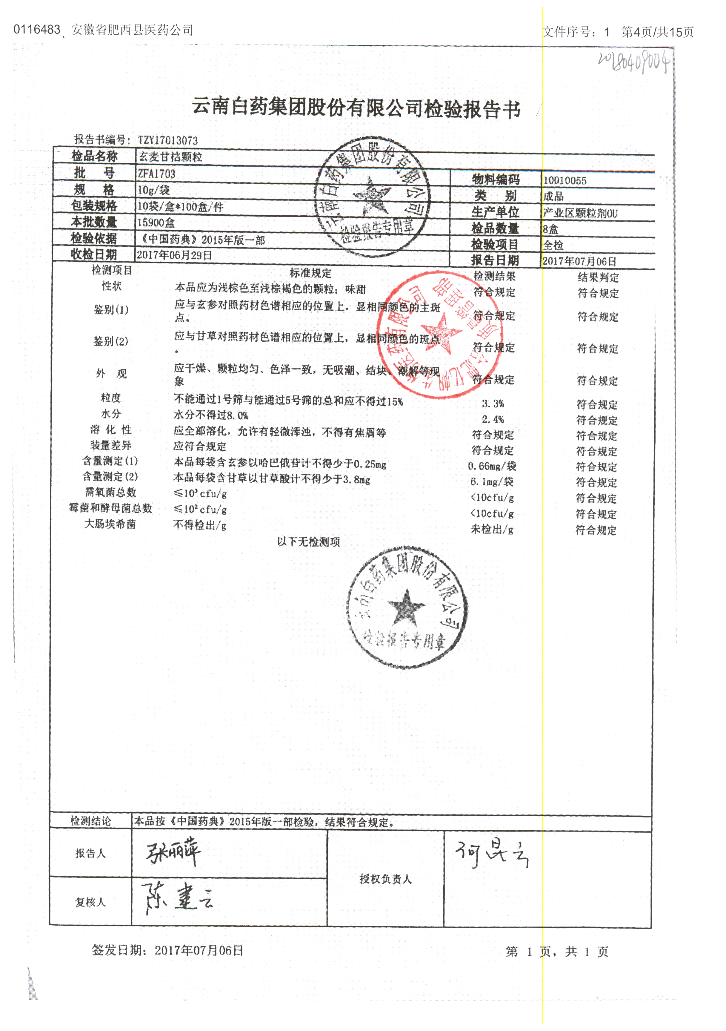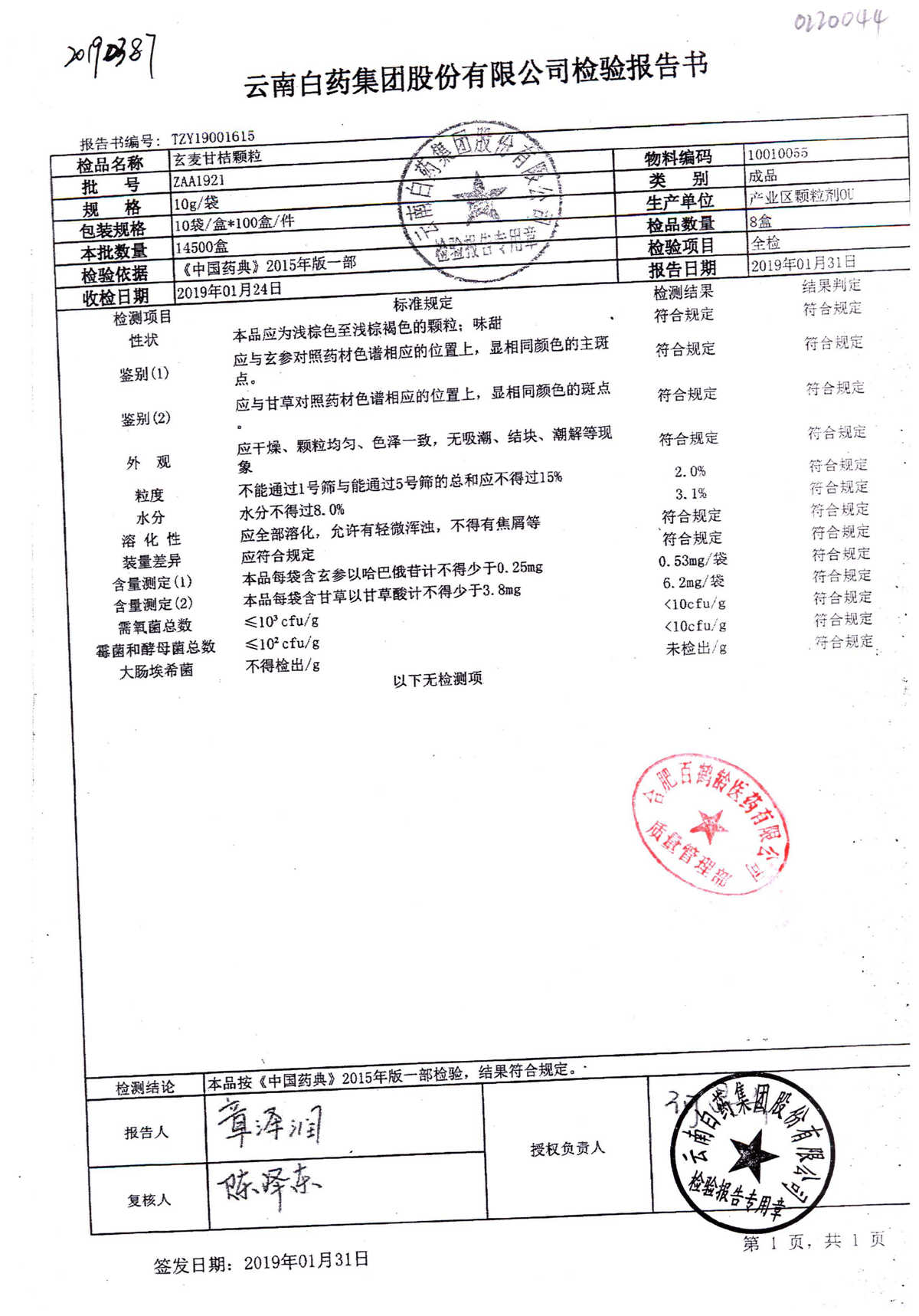 | 玄麥甘桔顆粒 | 10g*10袋 | ZCA1902 | 查看詳情 |