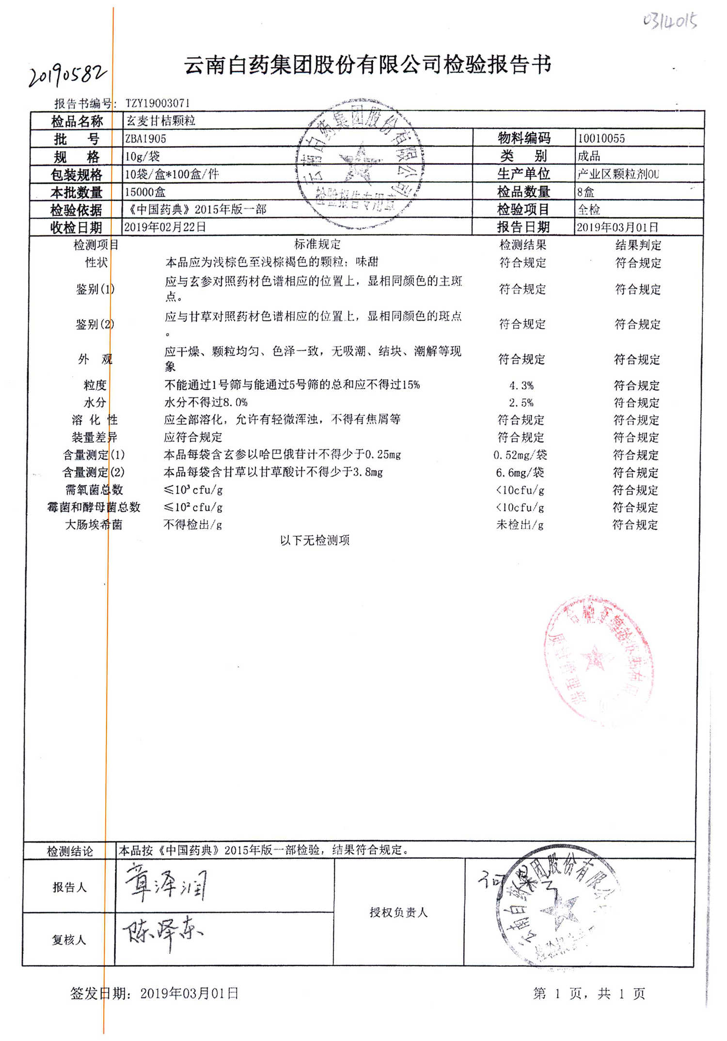 | 玄麥甘桔顆粒 | 10g*10袋 | ZBA1905 | 查看詳情 |