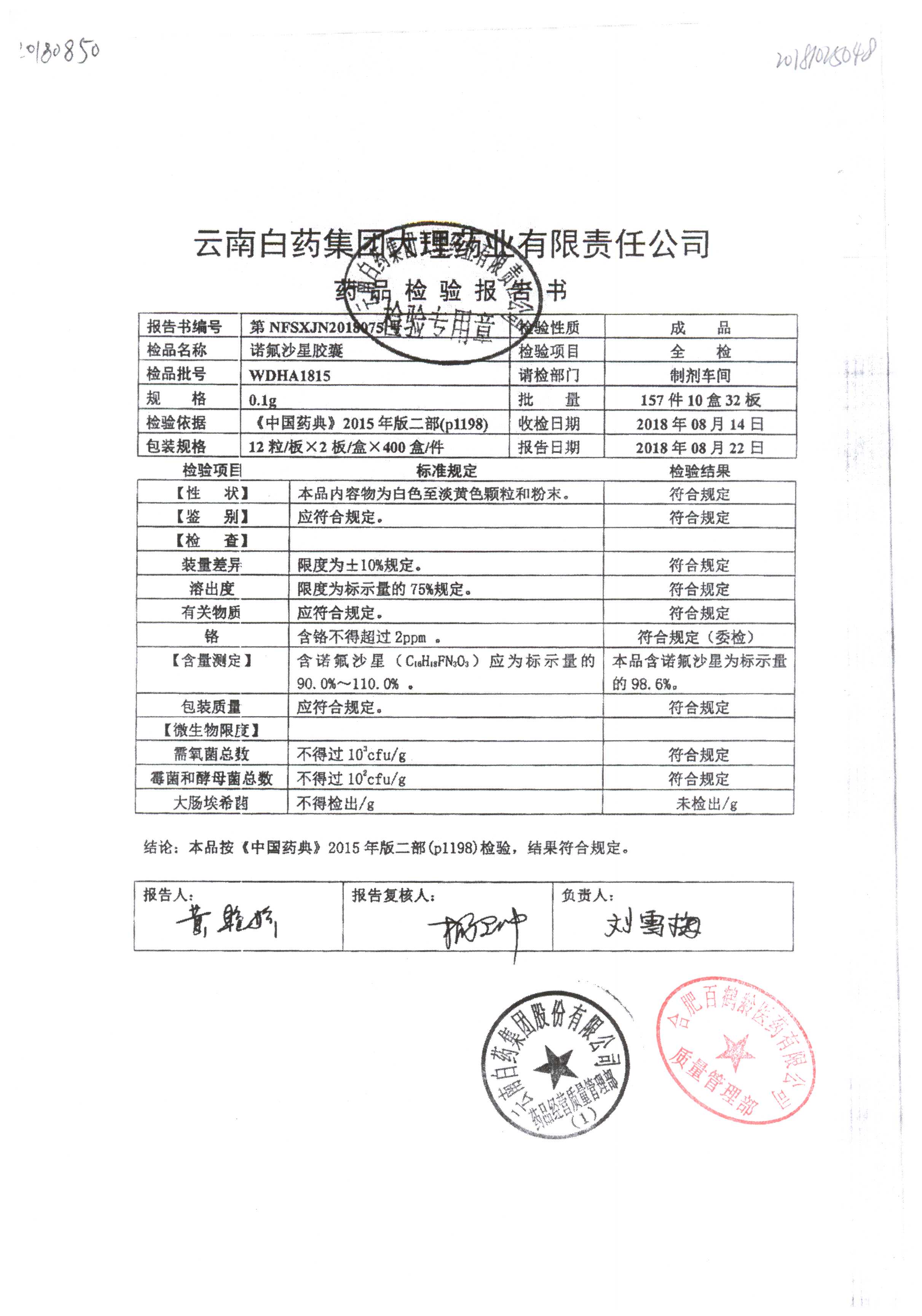 | 諾氟沙星膠囊 | 0.1g*24片 | WDHA1803 | 查看詳情 |