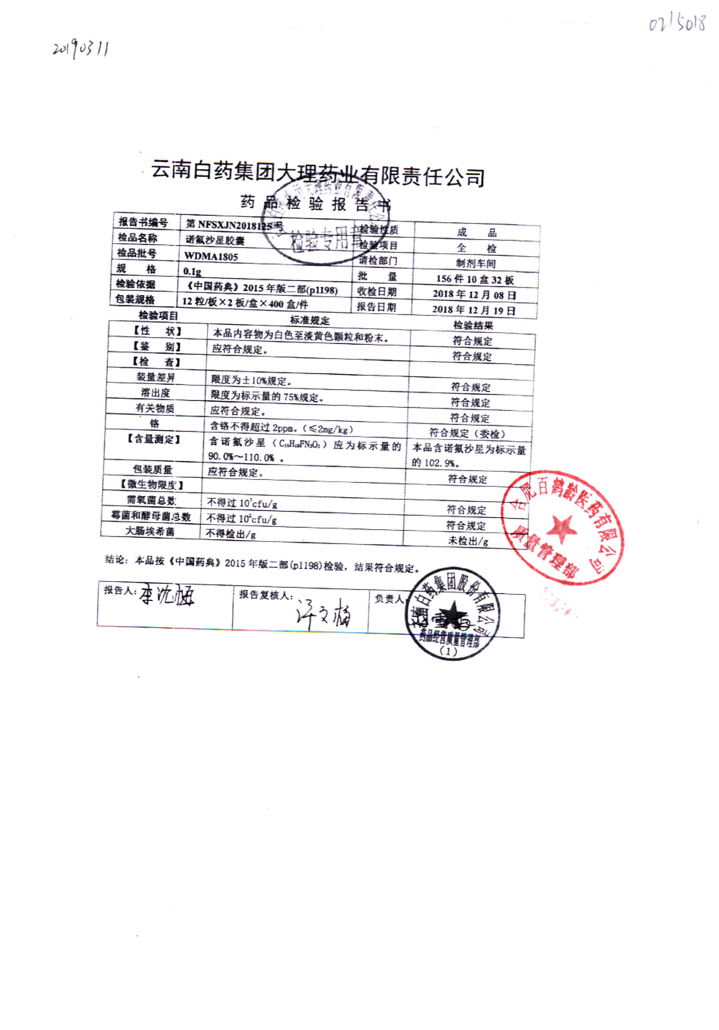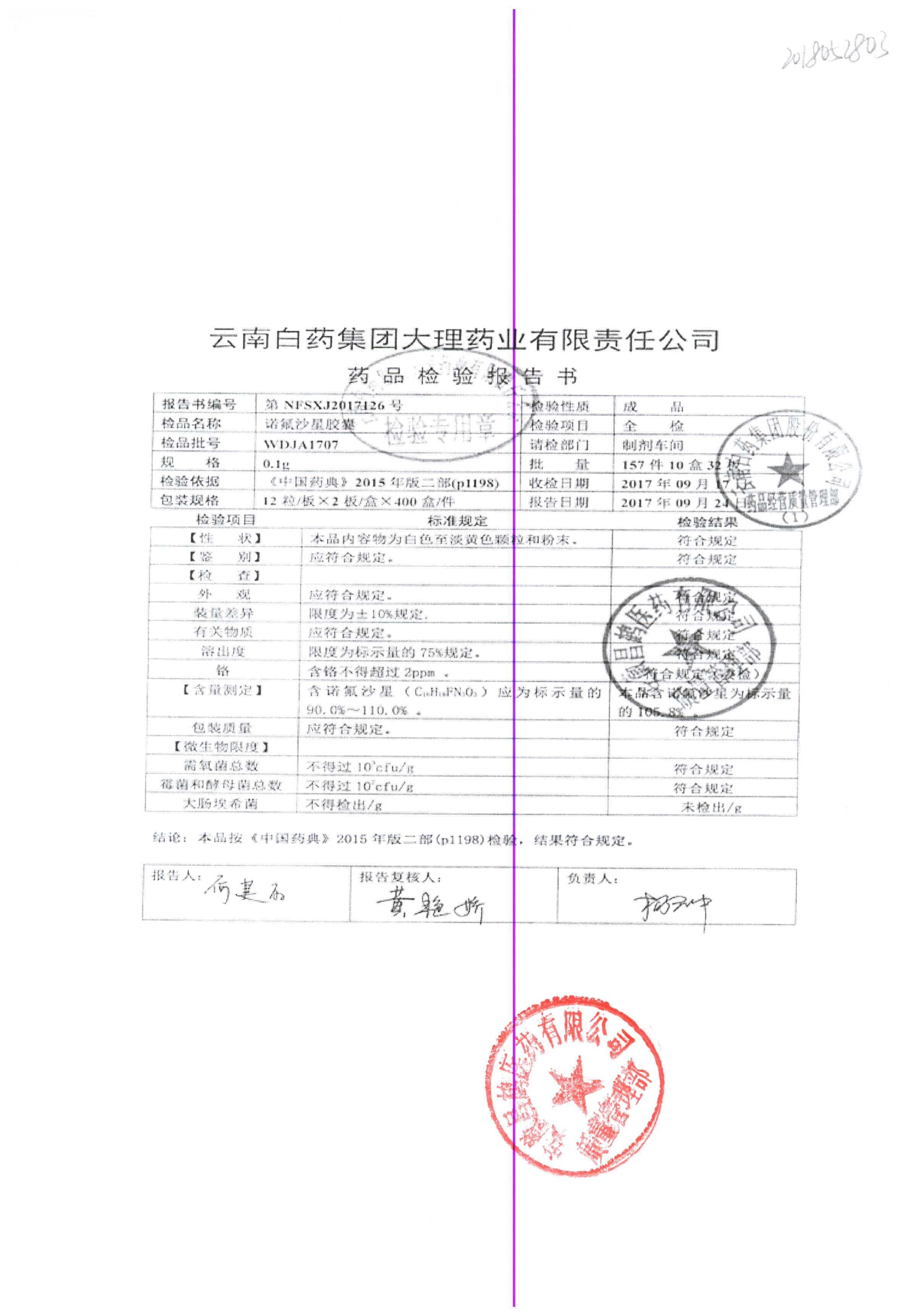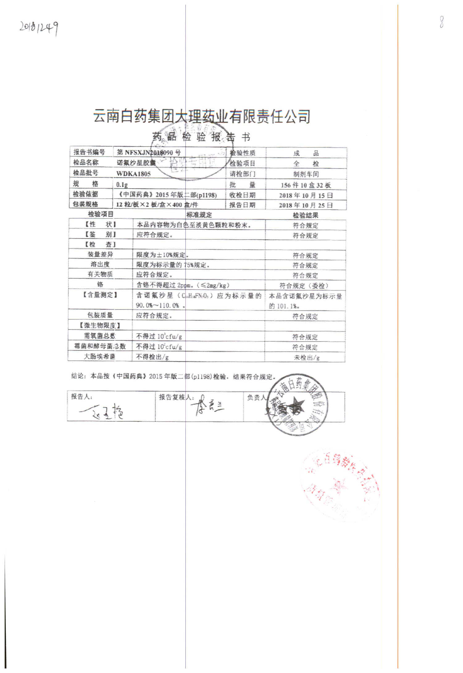 | 諾氟沙星膠囊 | 0.1g*24片 | WDMA1805 | 查看詳情 |