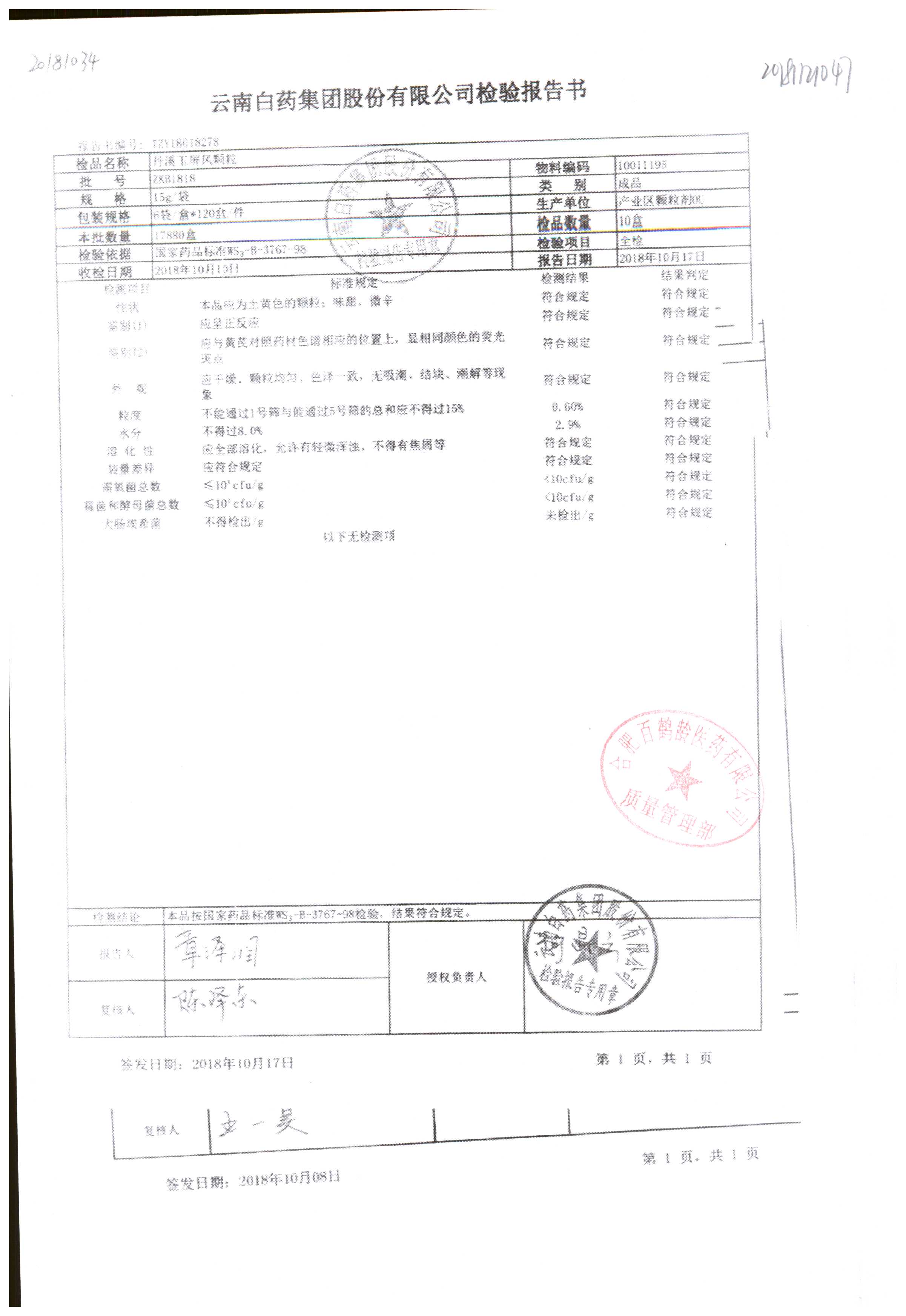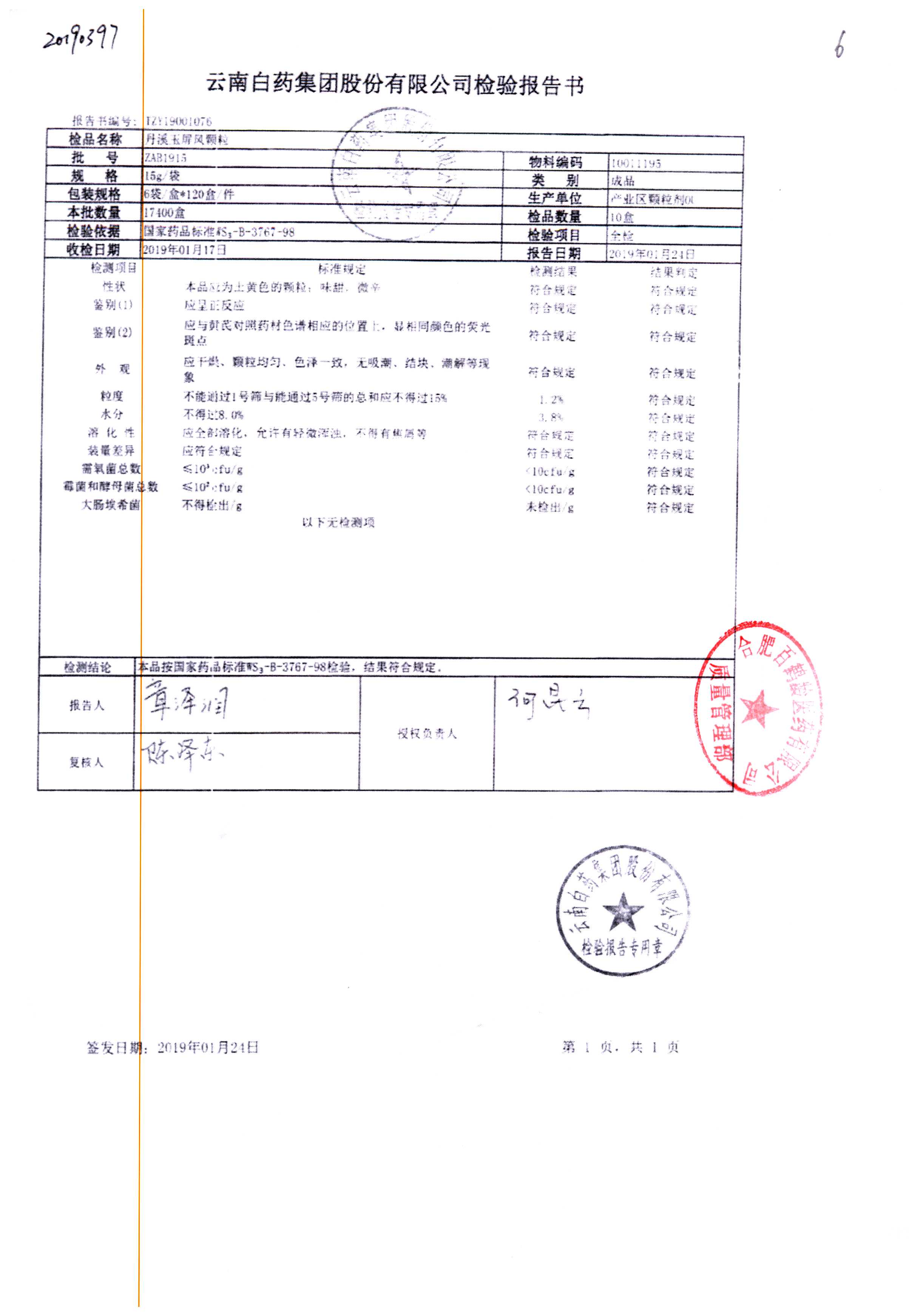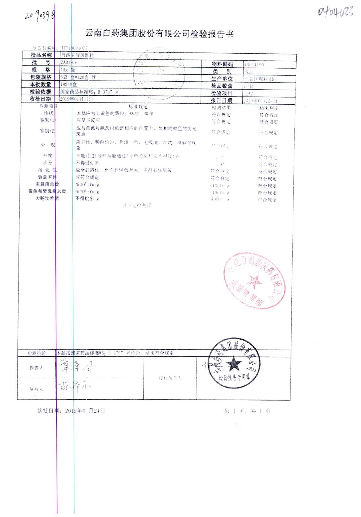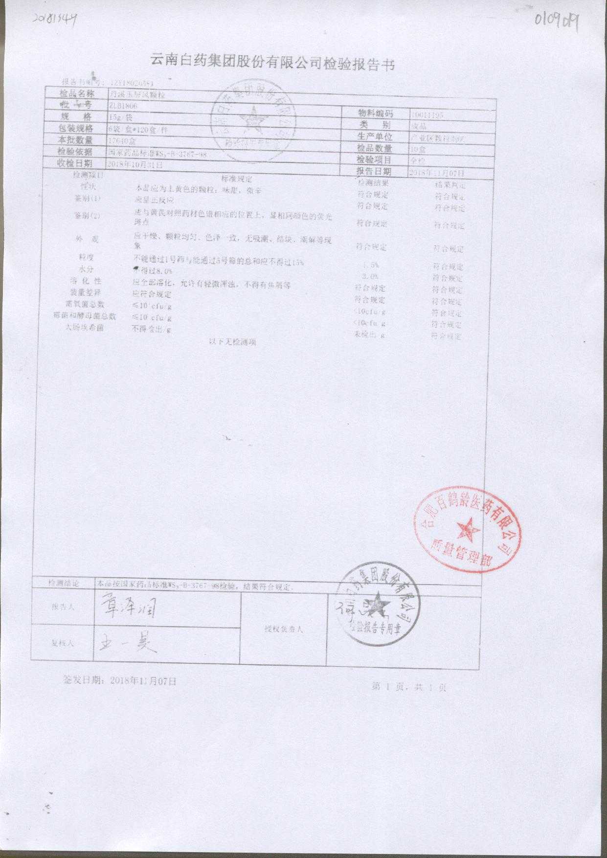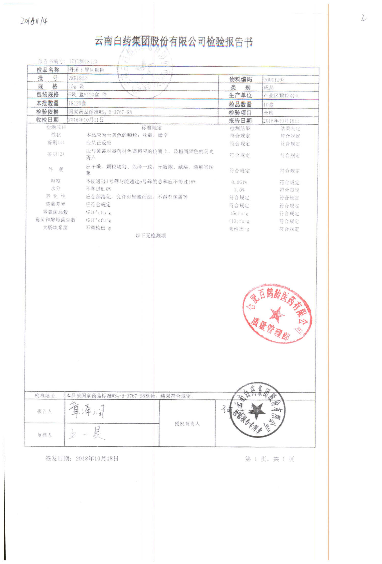 | 名稱 | 規(guī)格 | 批號 | 藥檢報告 |