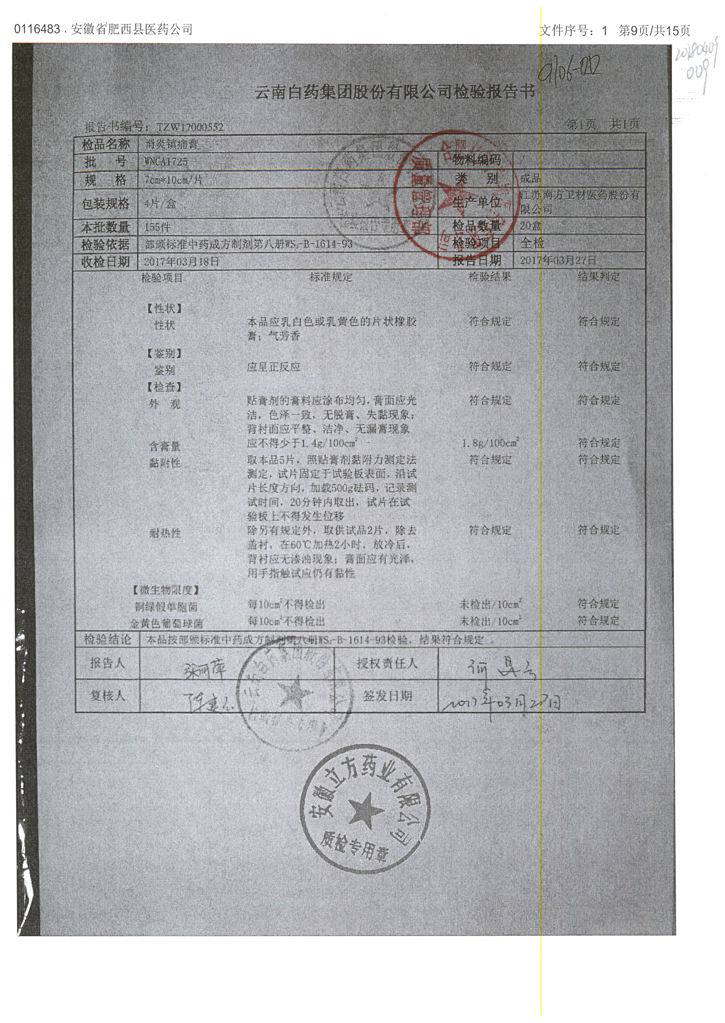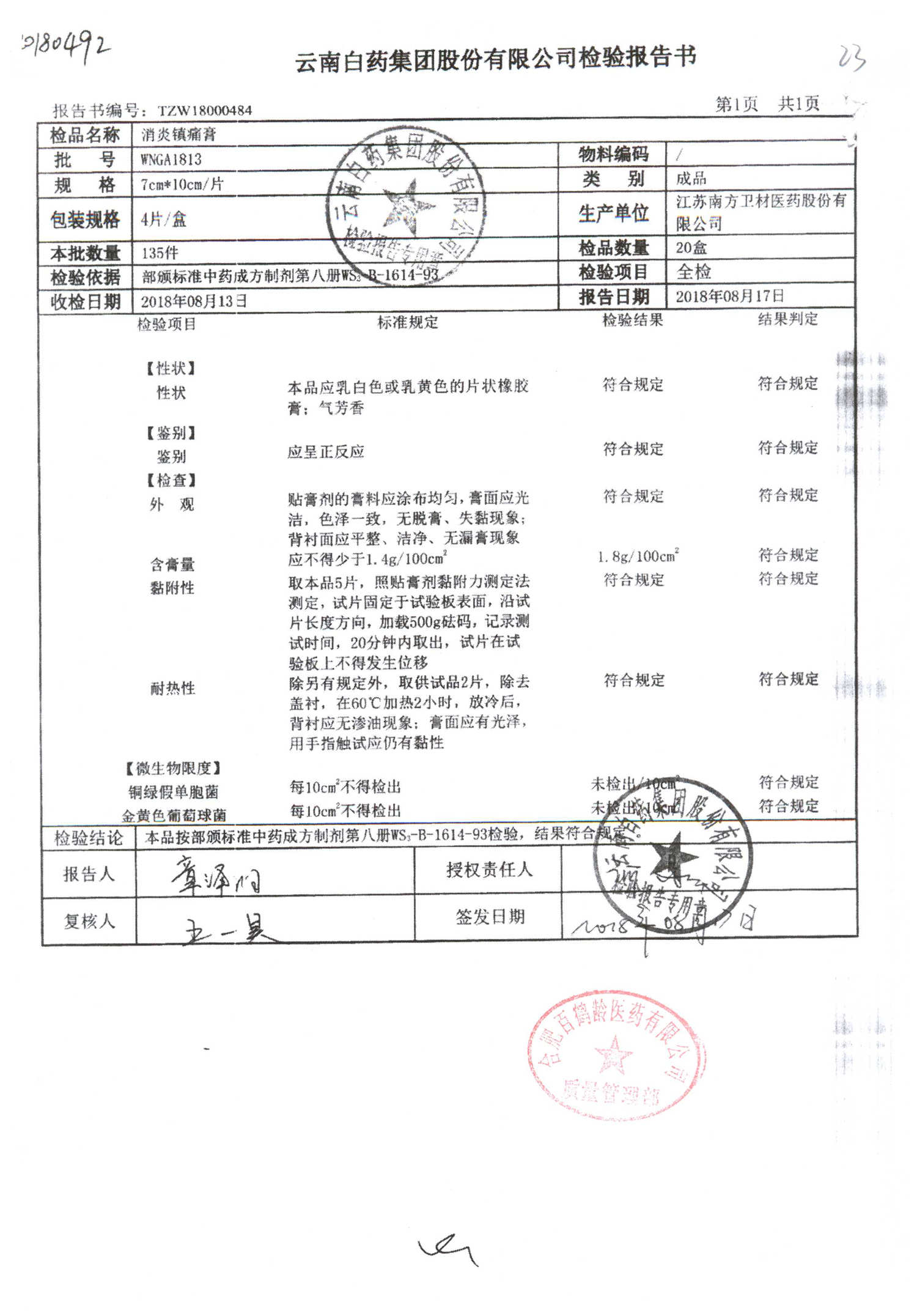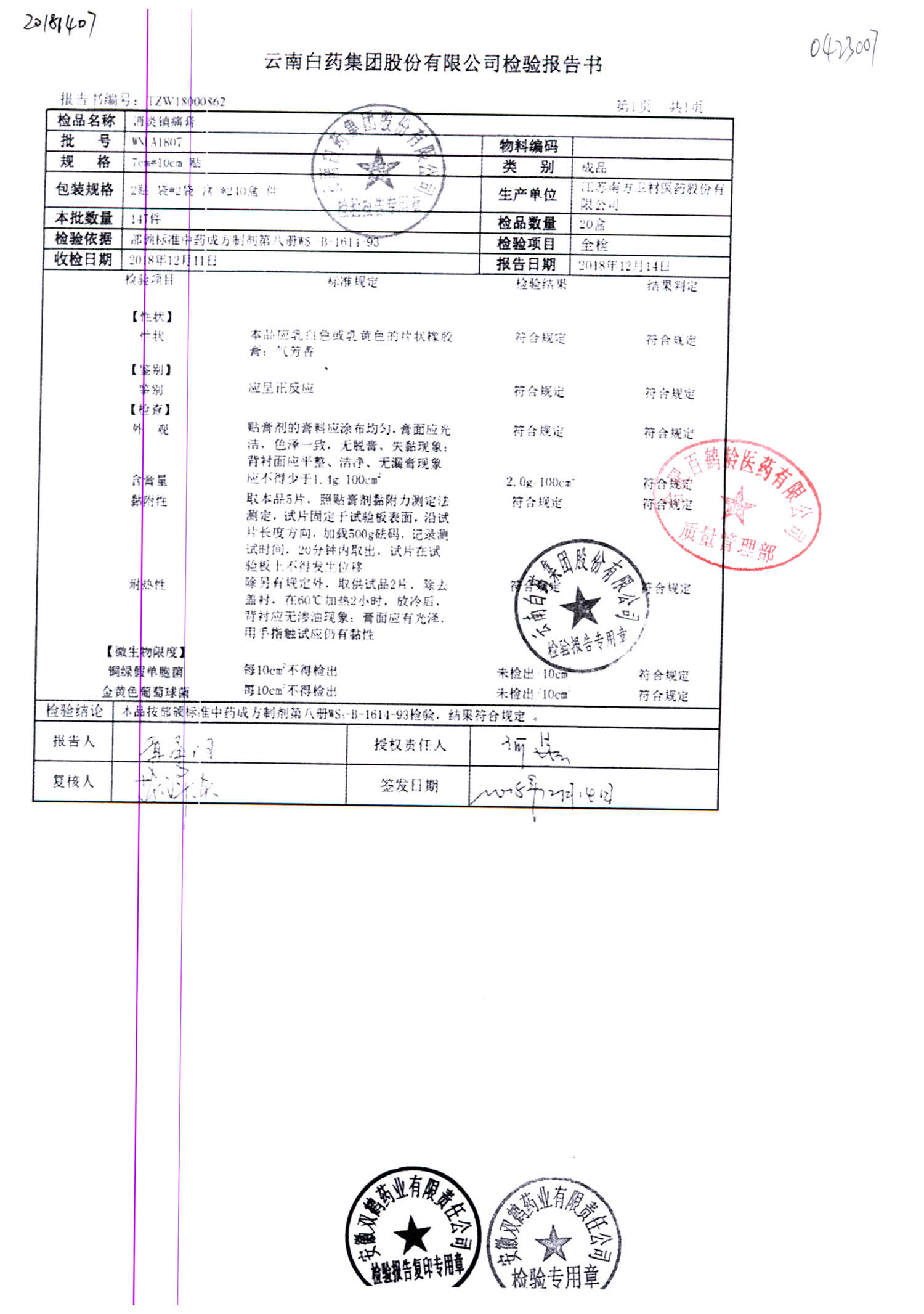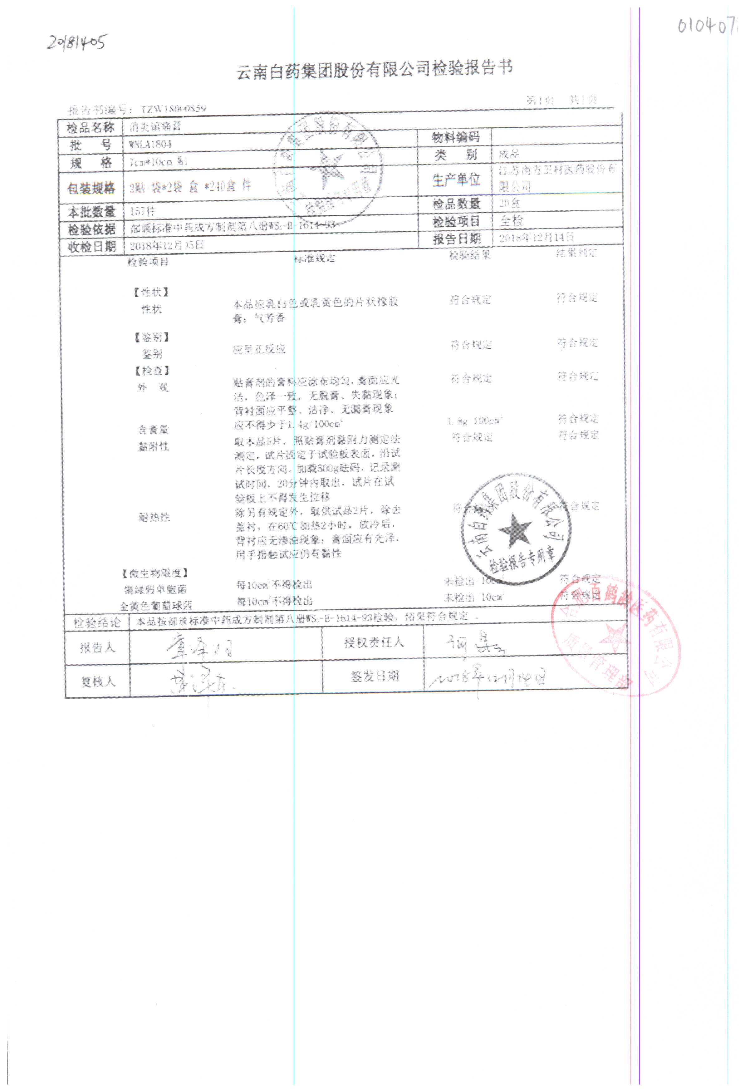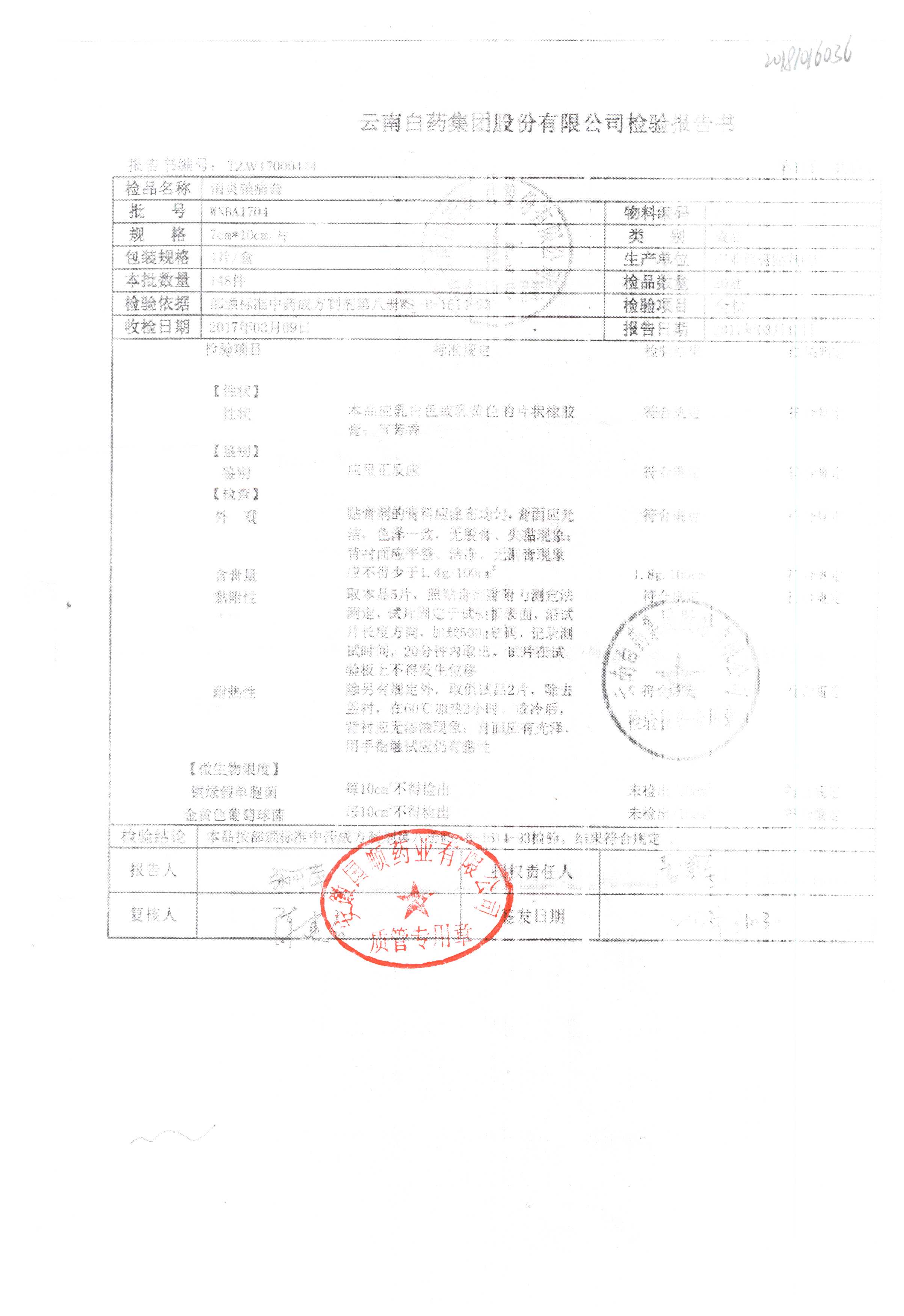 | 名稱 | 規(guī)格 | 批號(hào) | 藥檢報(bào)告 |
