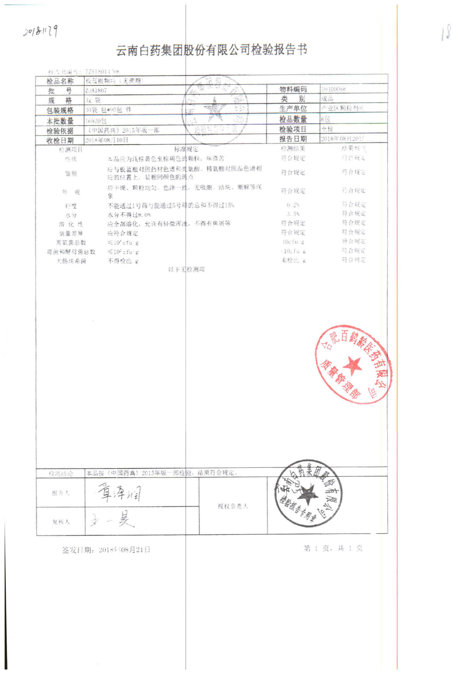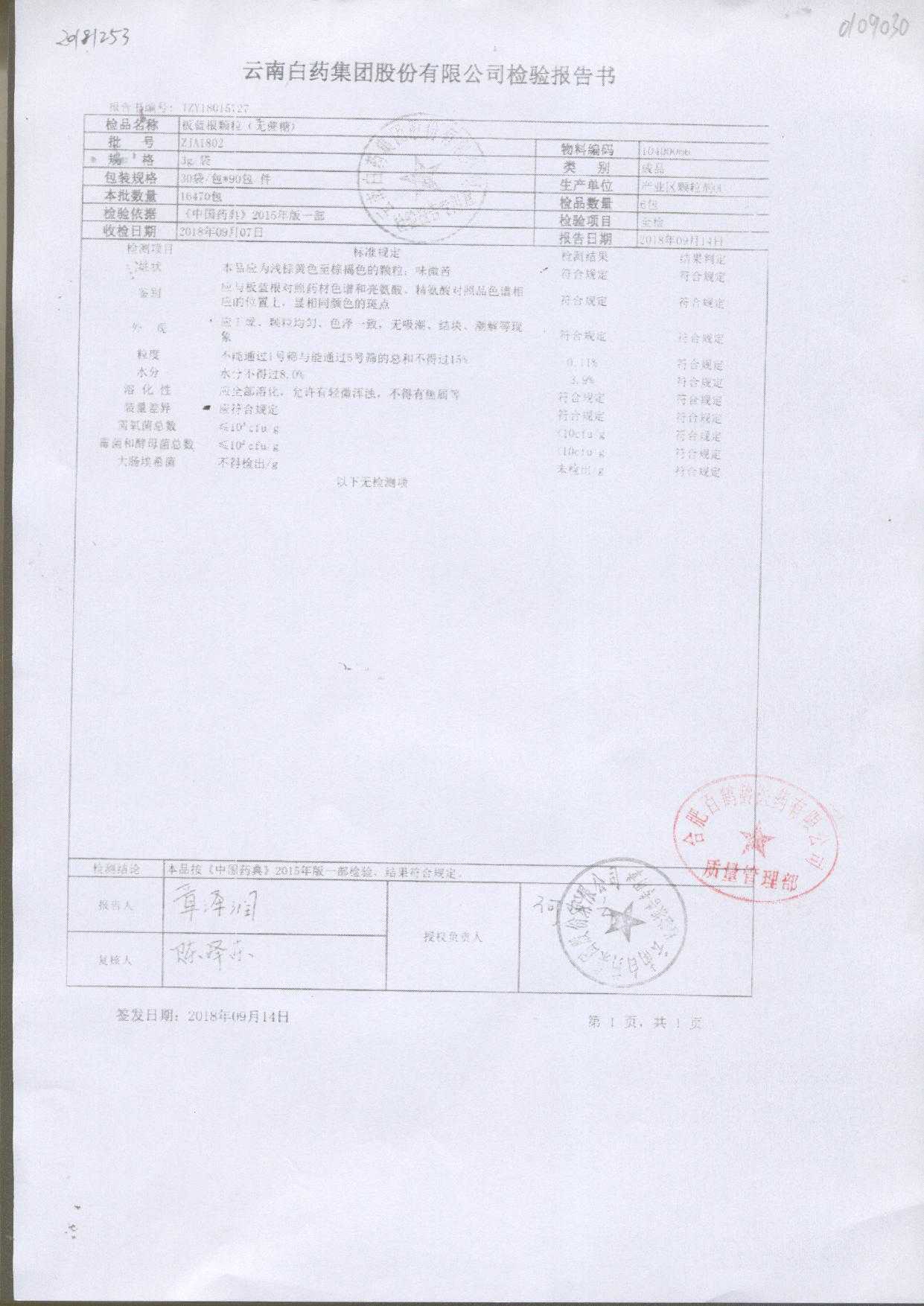 | 名稱 | 規(guī)格 | 批號 | 藥檢報(bào)告 |