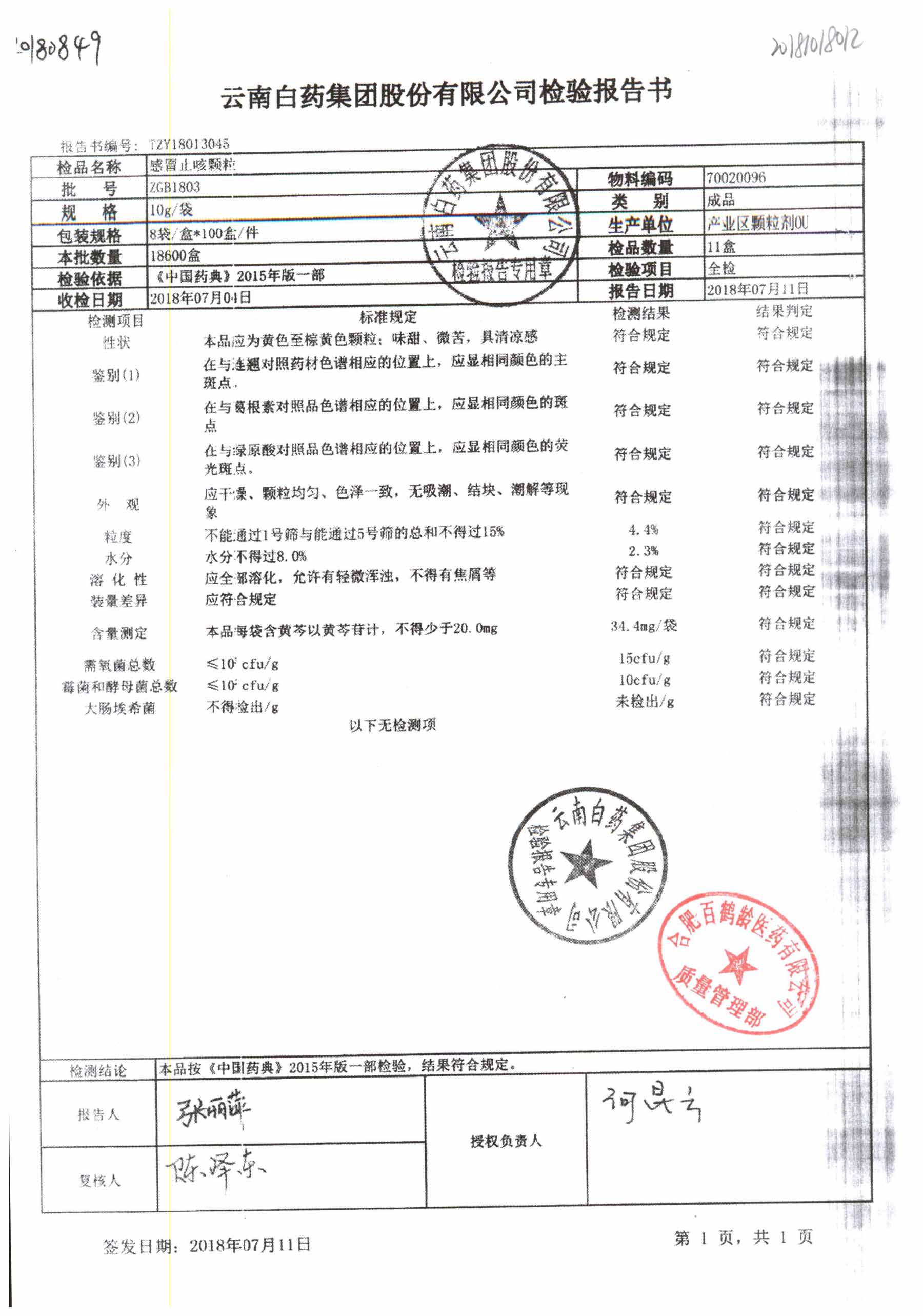 | 感冒止咳顆粒 | 10g*8袋 | ZCB1801 | 查看詳情 |
