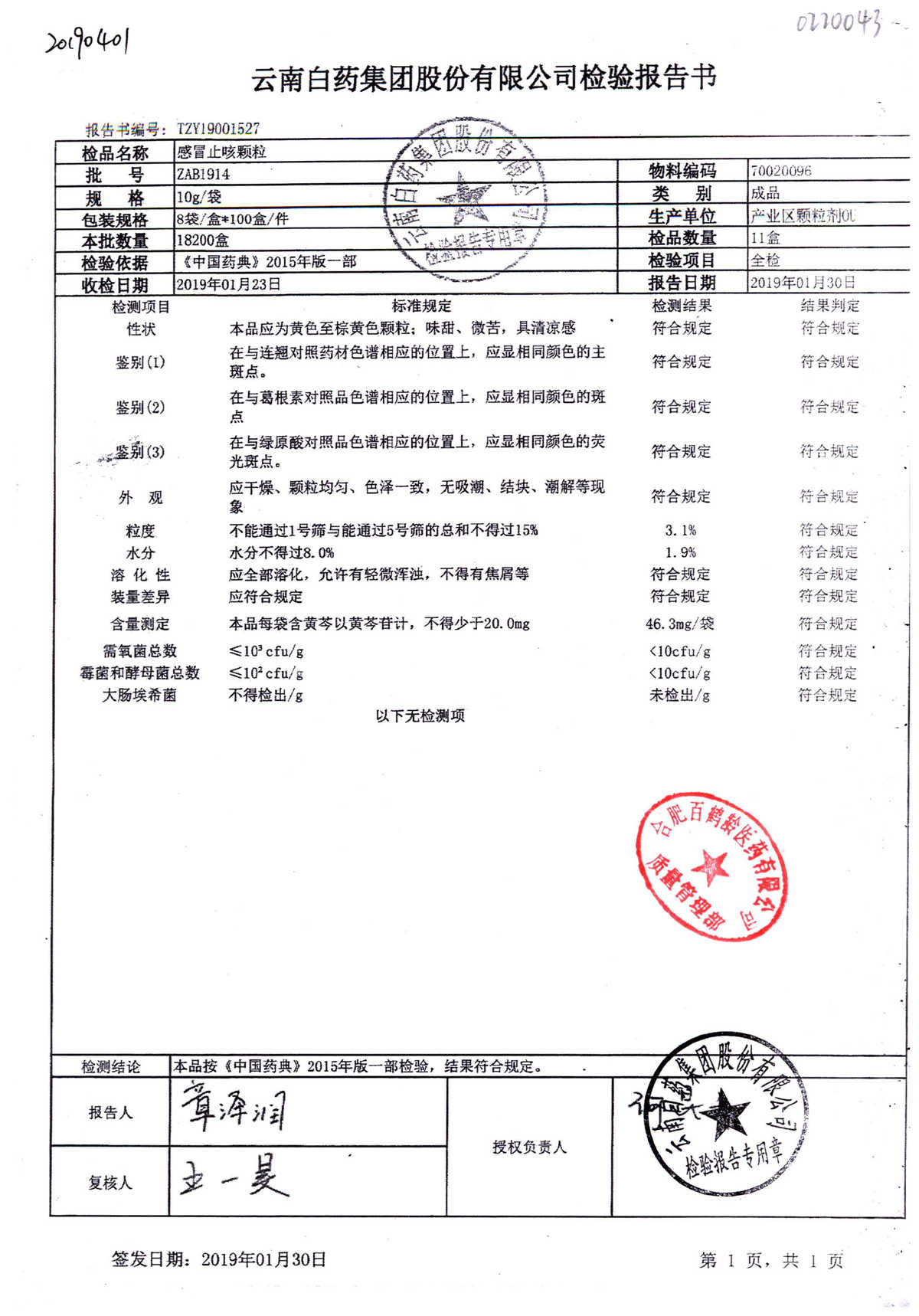 | 感冒止咳顆粒 | 10g*8袋 | ZBB1910 | 查看詳情 |