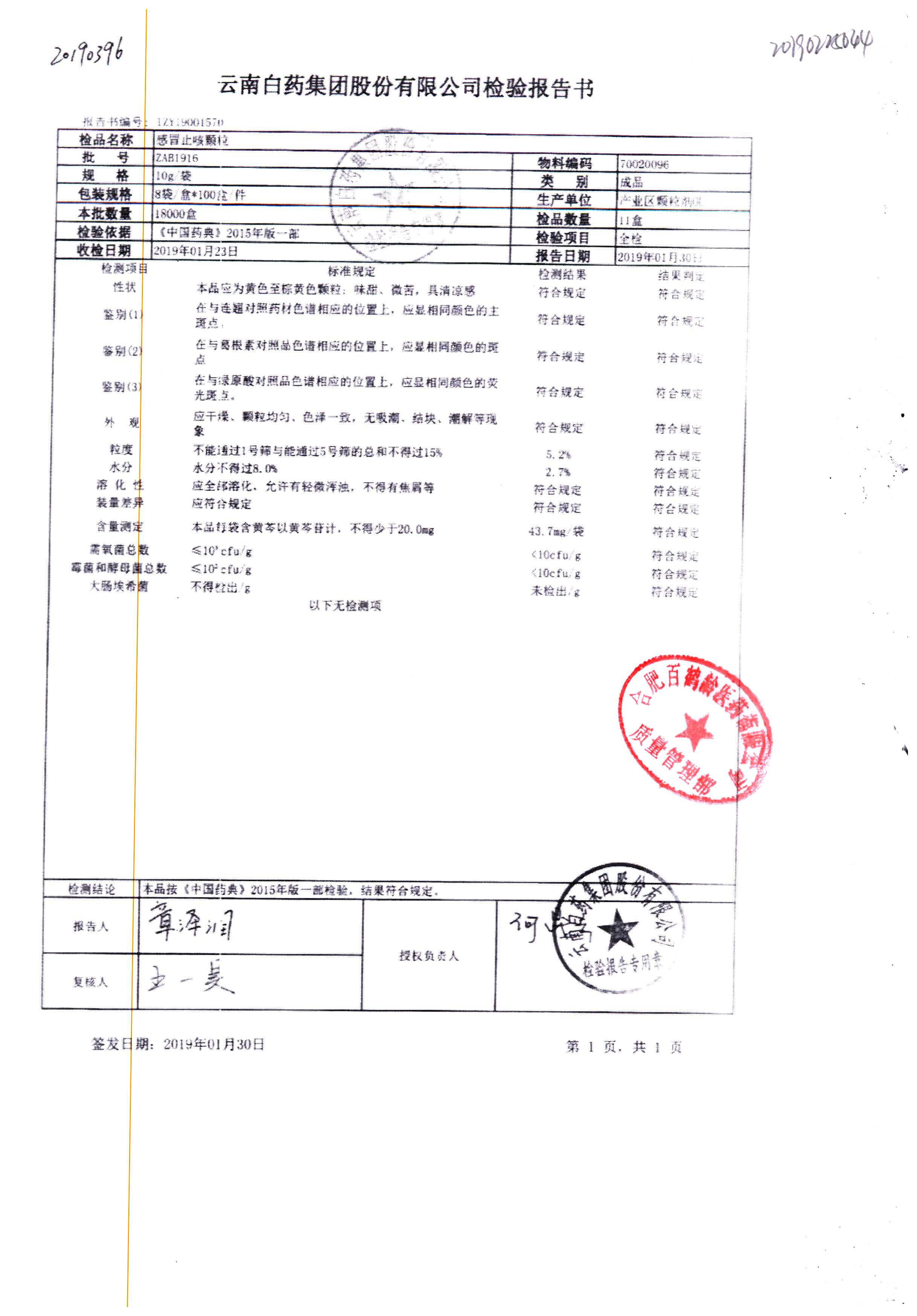| 名稱 | 規(guī)格 | 批號 | 藥檢報告 |