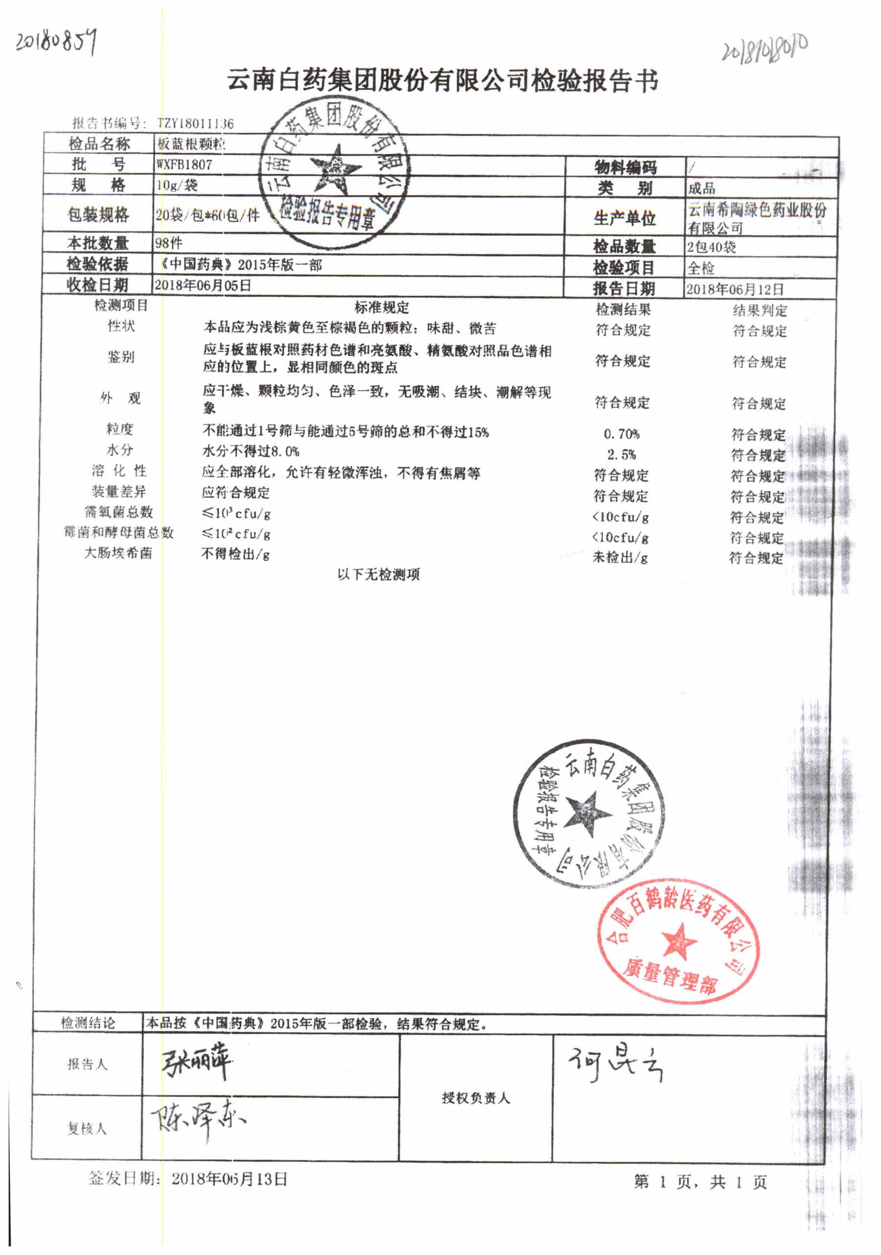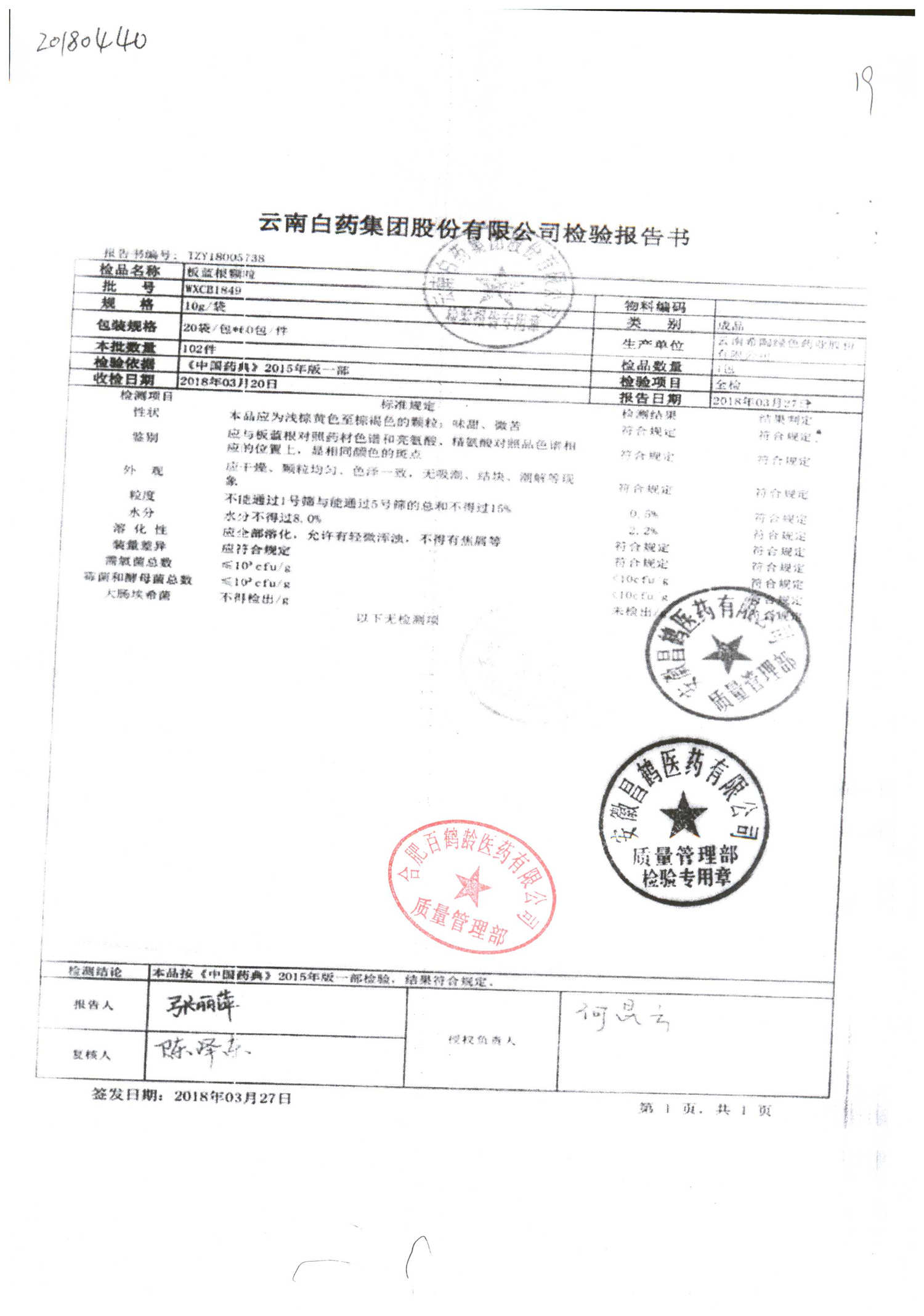 | 板藍(lán)根顆粒 | 10g*20袋 | WXFB1807 | 查看詳情 |