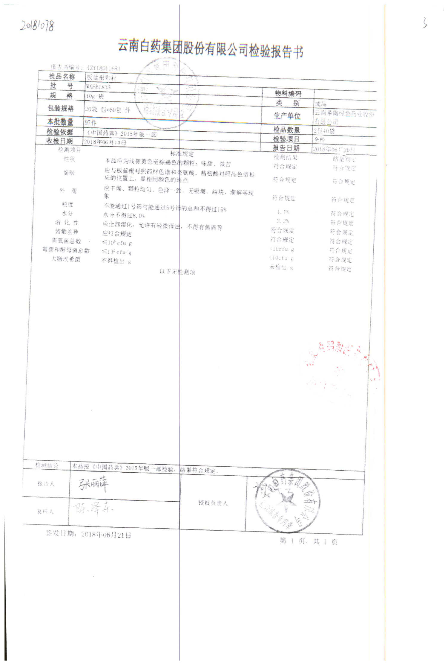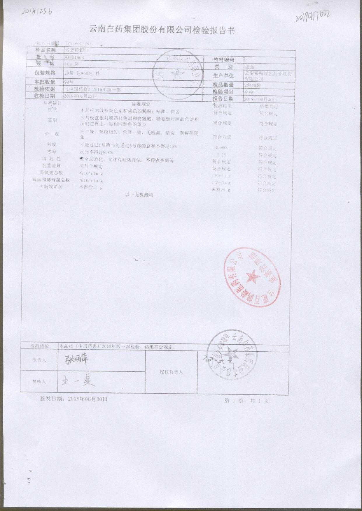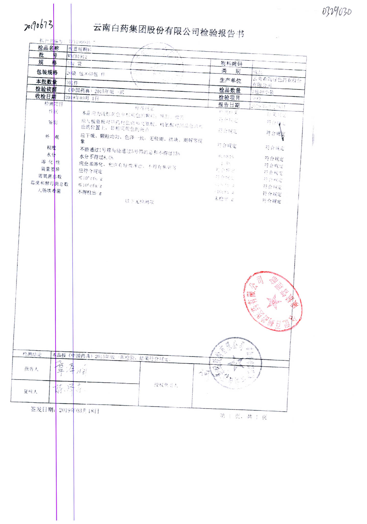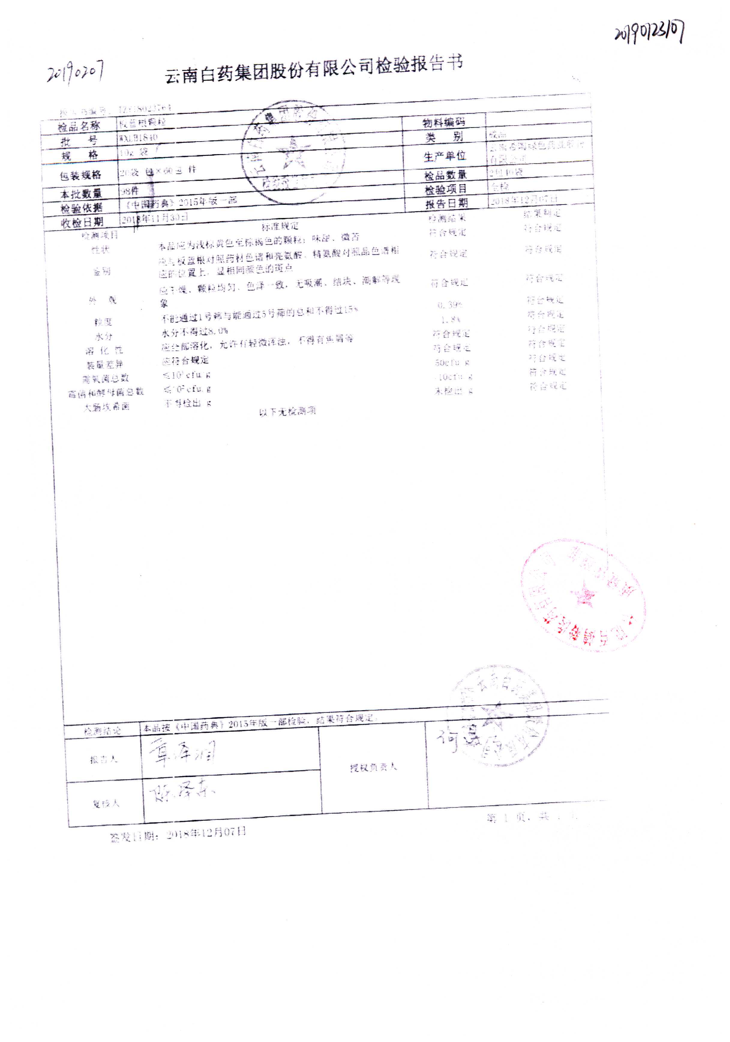| 名稱 | 規(guī)格 | 批號 | 藥檢報告 |