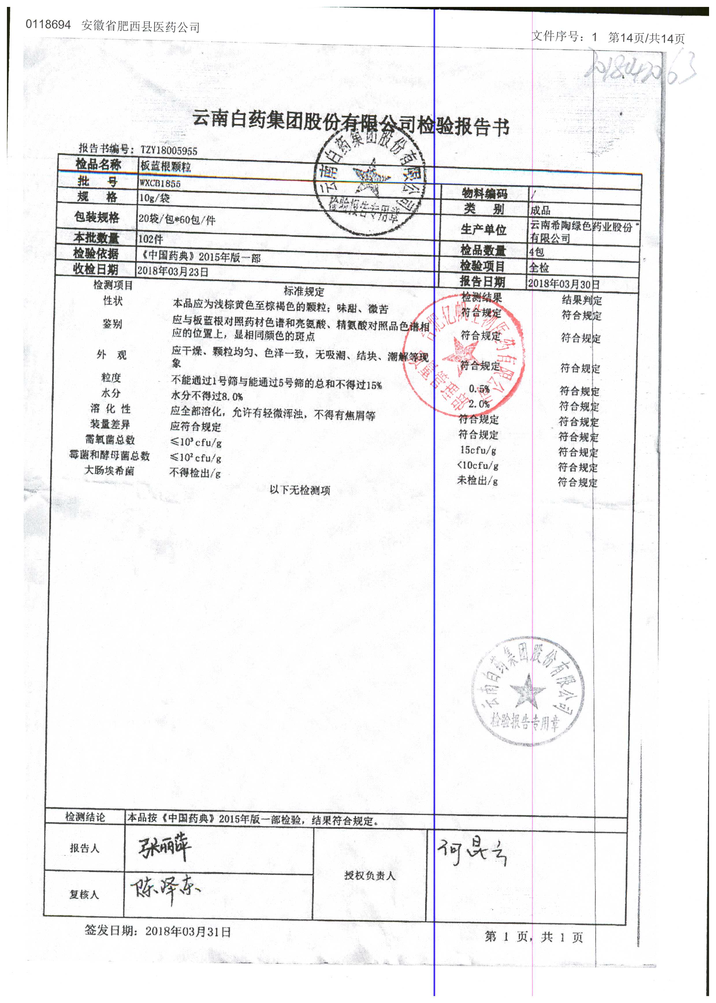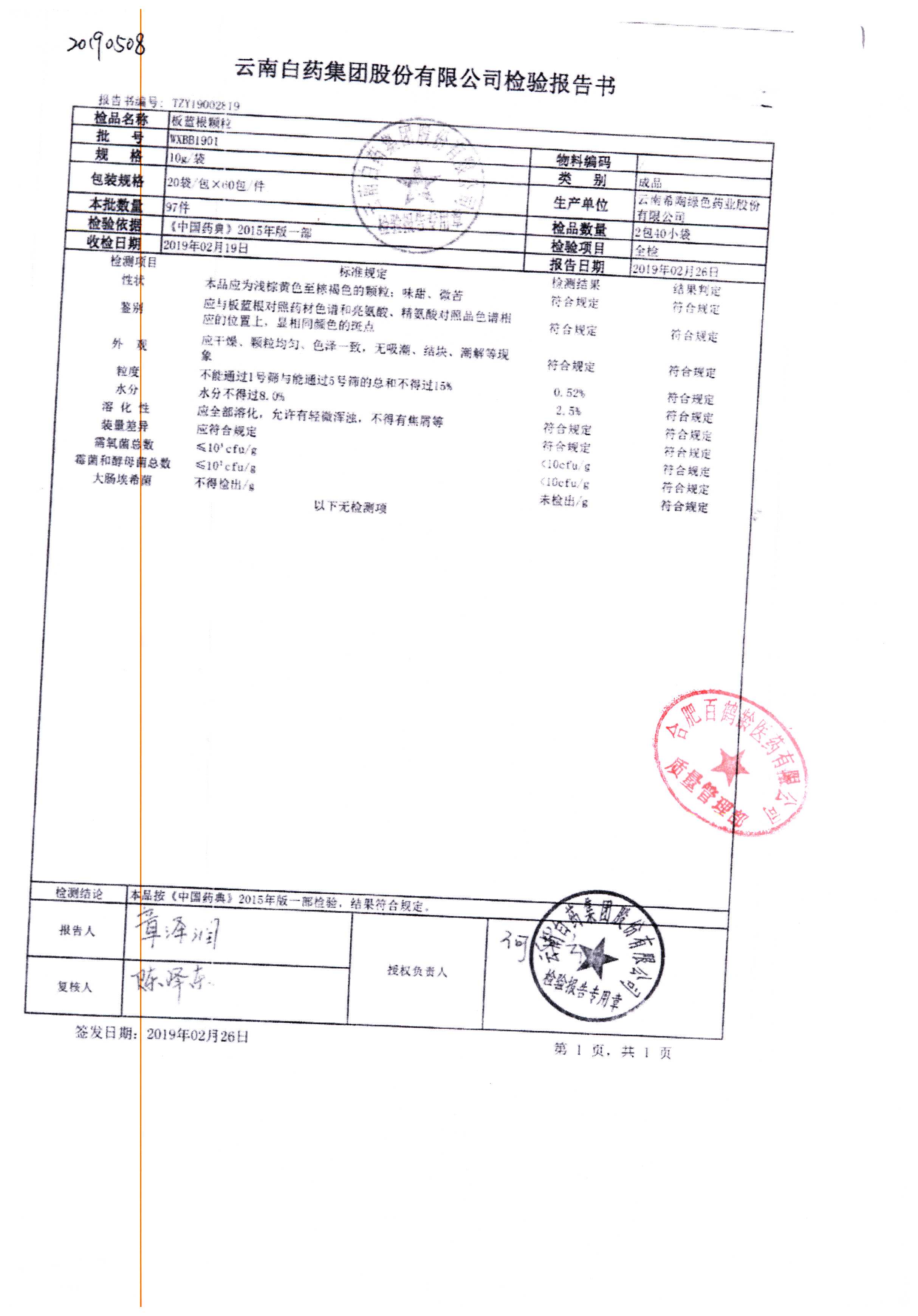 | 板藍(lán)根顆粒 | 10g*20袋 | WXCB1912 | 查看詳情 |