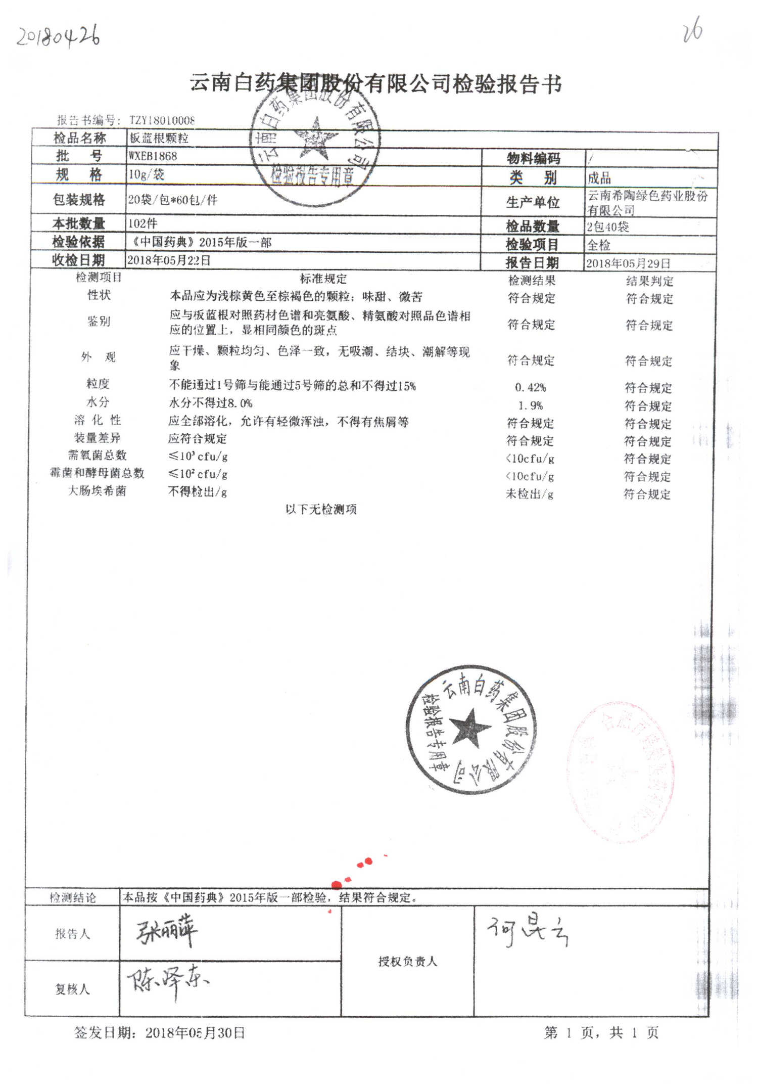 | 板藍(lán)根顆粒 | 10g*20袋 | WXEB18100 | 查看詳情 |